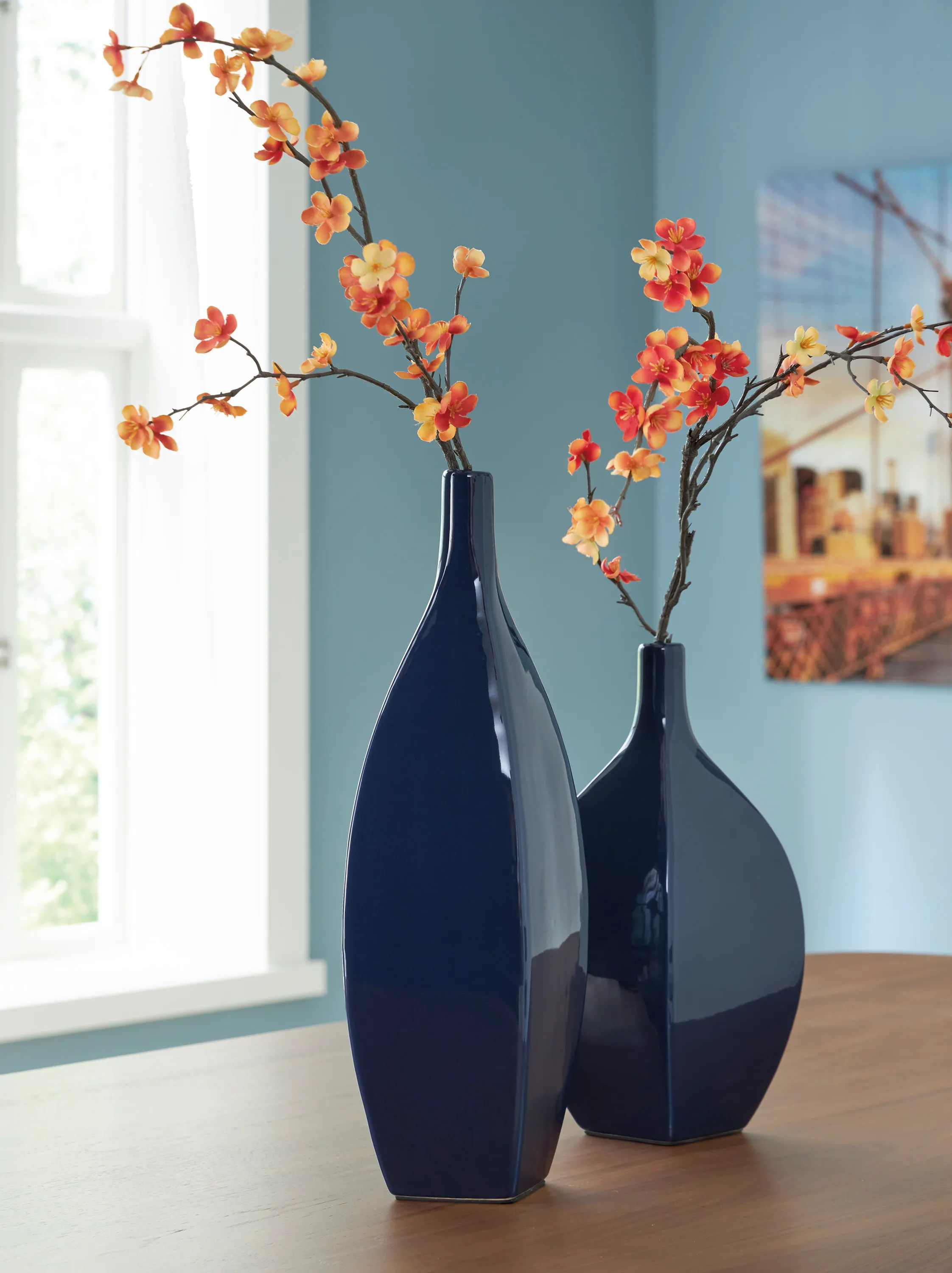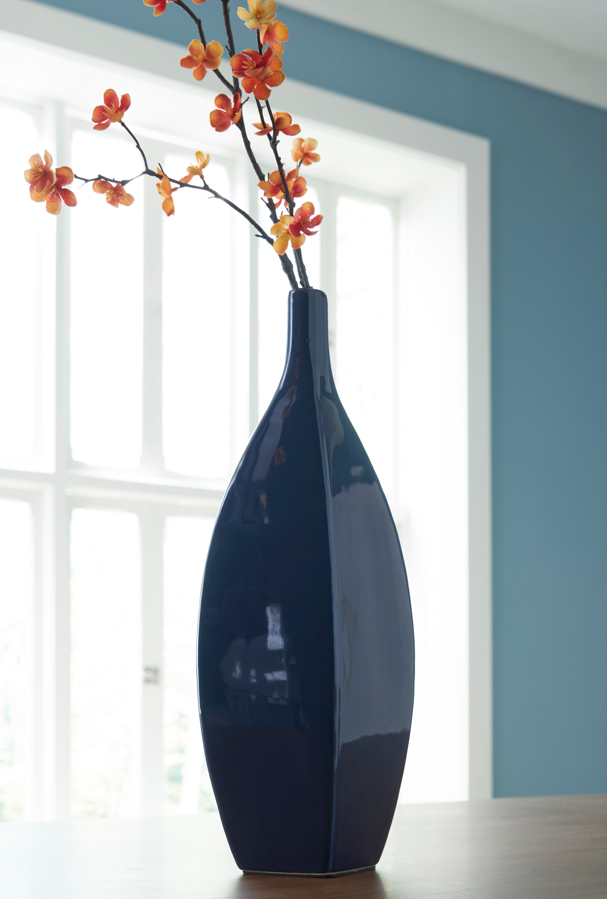 This vase is an effortless display of versatile style. Its navy blue hue makes a chic statement, whether hosting faux florals or standing alone. Sprucing up your outdoor oasis? The vase is durable enough for alfresco use, so you can add decorative flair wherever you please.