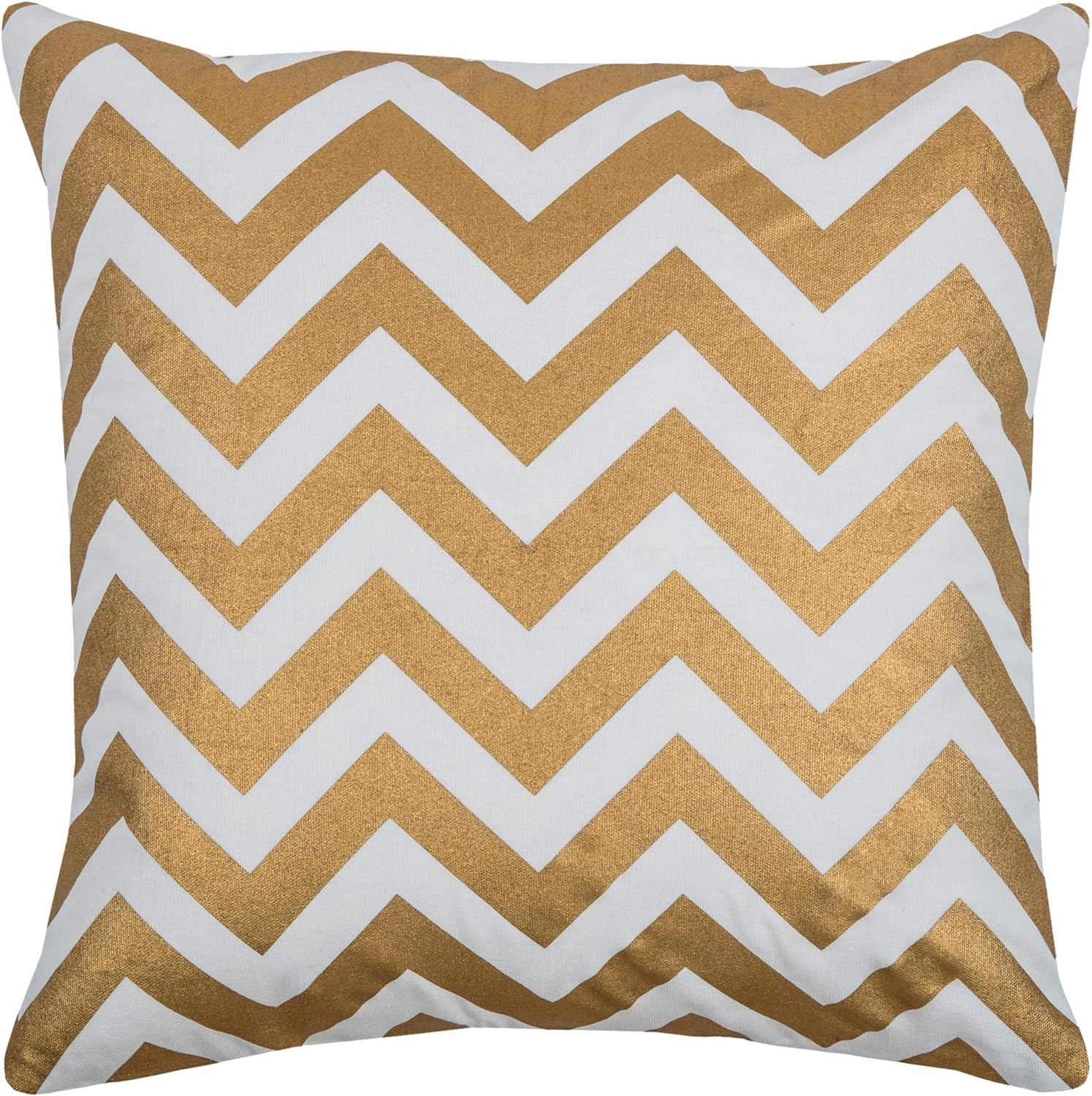 Embrace the shiny gold and solid white color palette with this accent pillow from Rizzy Home. Made with a chevron pattern, this accent pillow is perfect for contemporary spaces.