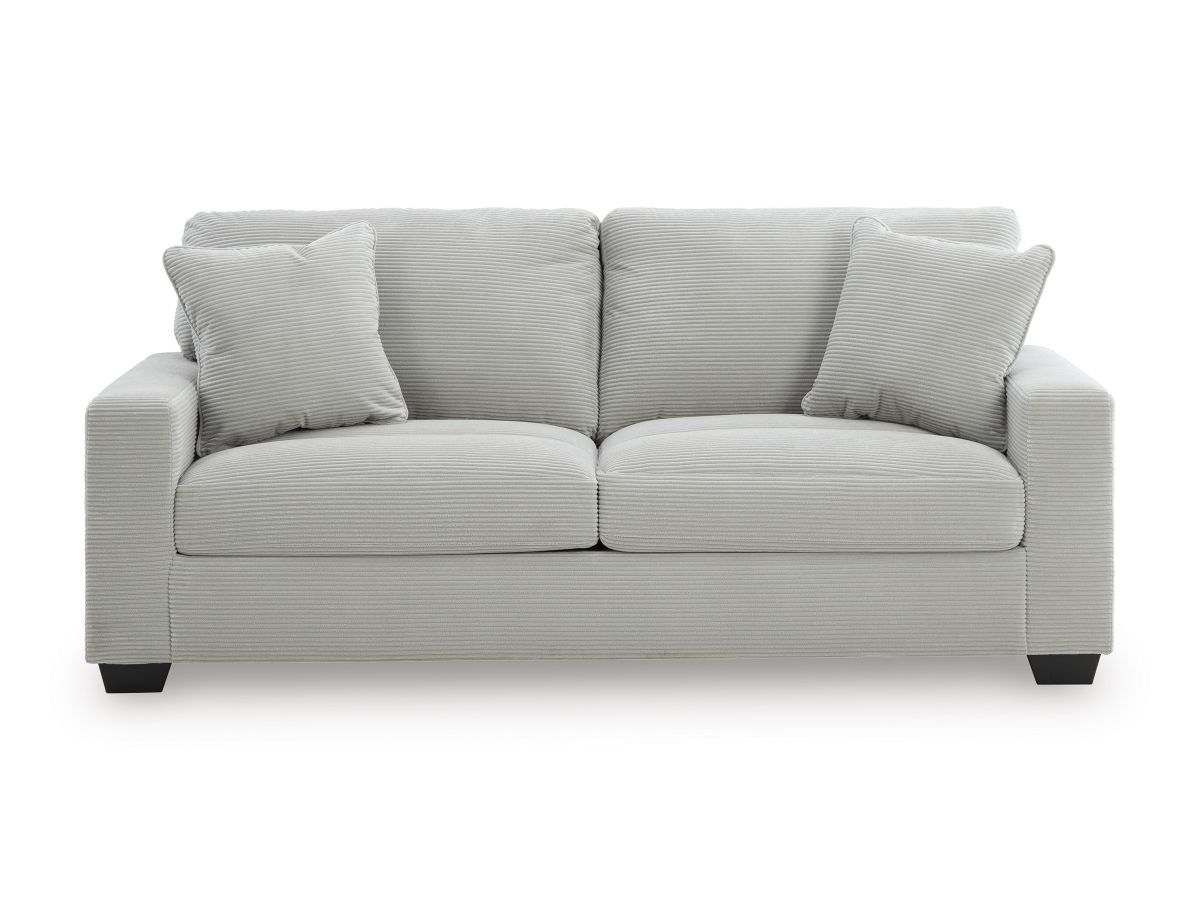 The crisp neutral hue and striking design details of this sofa create a living room that expertly reflects your modern taste. For irresistibly cool textural appeal, the ultra-soft fabric is enhanced by a small-scale corded look. With a clean-lined silhouette complete with track arms, this sofa allows you to take a trend-right approach to everyday living.