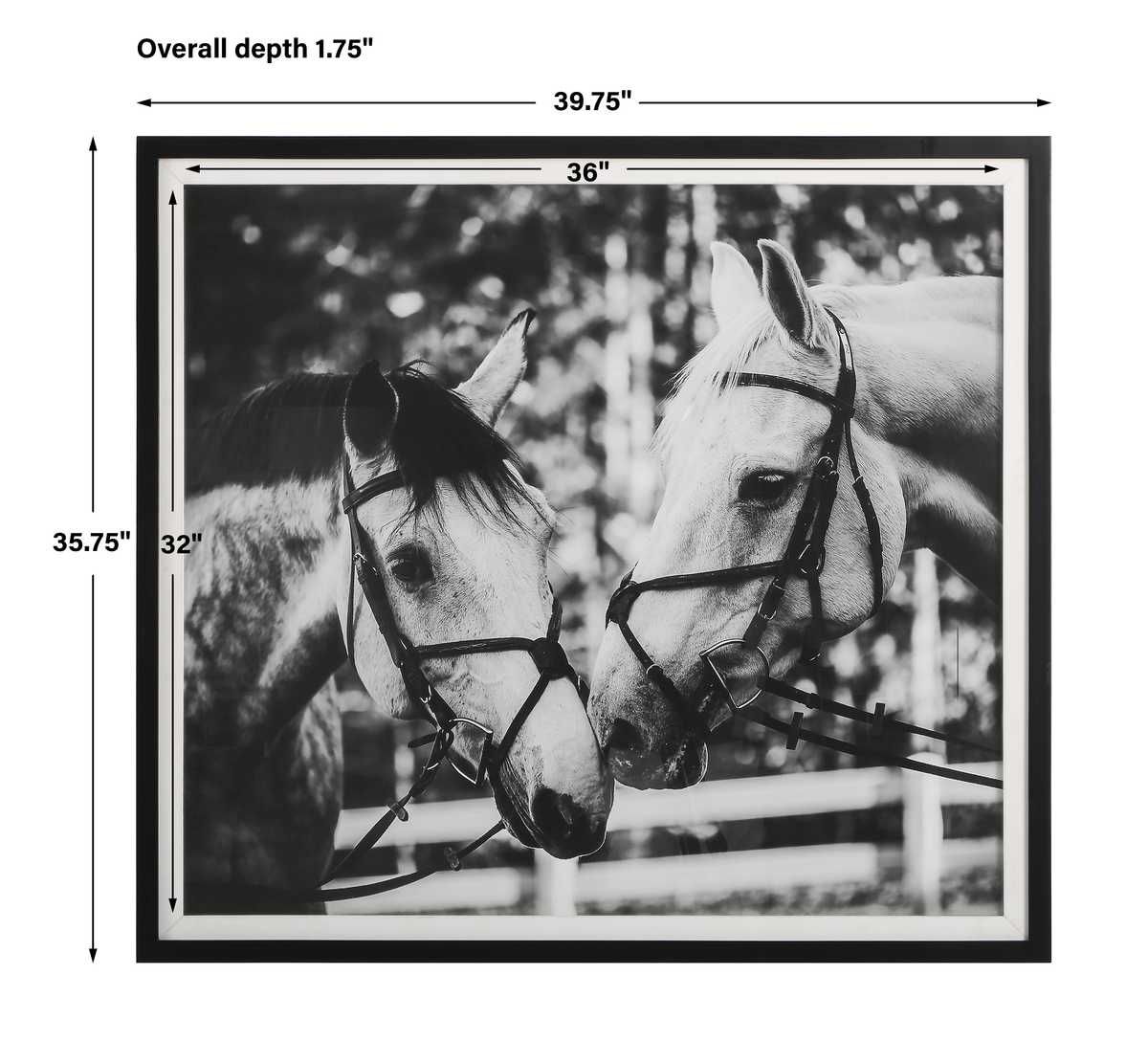 Ralph Waldo Emerson once said, "the eyes indicate the antiquity of the soul." As one part of a striking equine story, this artwork showcases an exclusive black and white portrait under glass with a simple satin black frame and white linen liner.