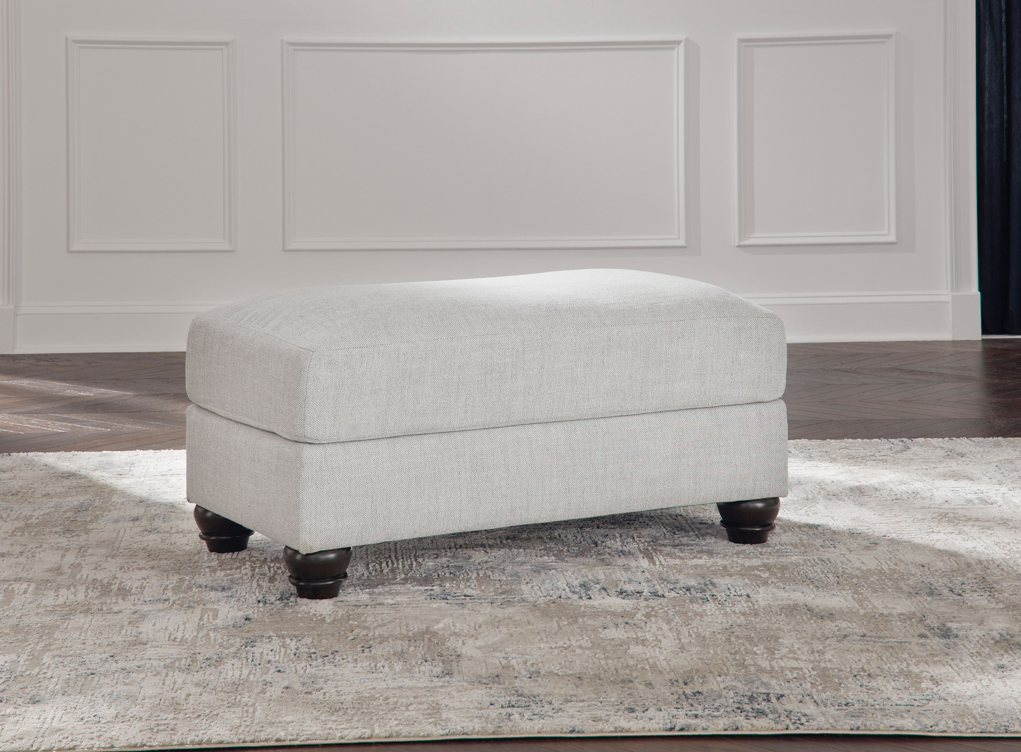 If you like the idea of a richly versatile “transitional” look that feels fresh and contemporary—with a timeless classic sensibility—feast your eyes on this ottoman. Its soothing neutral upholstery with ribbed texture, a delightful change from the ordinary, is sure to feel right at home now and in the future.