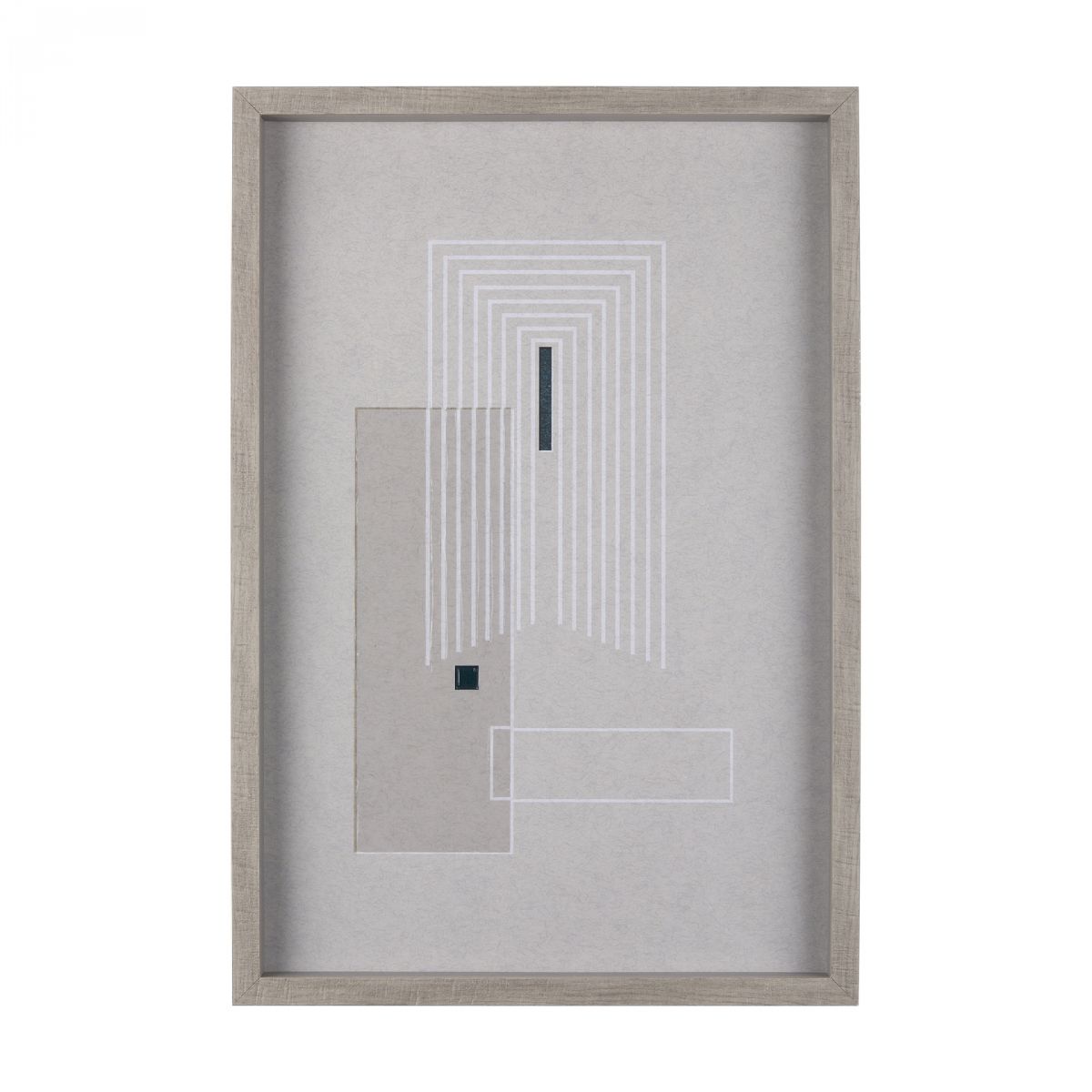 "Balance V" by Mercana Studio is a striking composition that merges geometric precision with minimalist elegance. The interplay of muted taupe and deep teal hues, accented by crisp white lines, offers a layered visual narrative, inviting contemplation on structure and form. Hand-embellished for tactile depth, this framed art print captures the essence of contemporary sophistication, transforming any space into a gallery of modern allure.