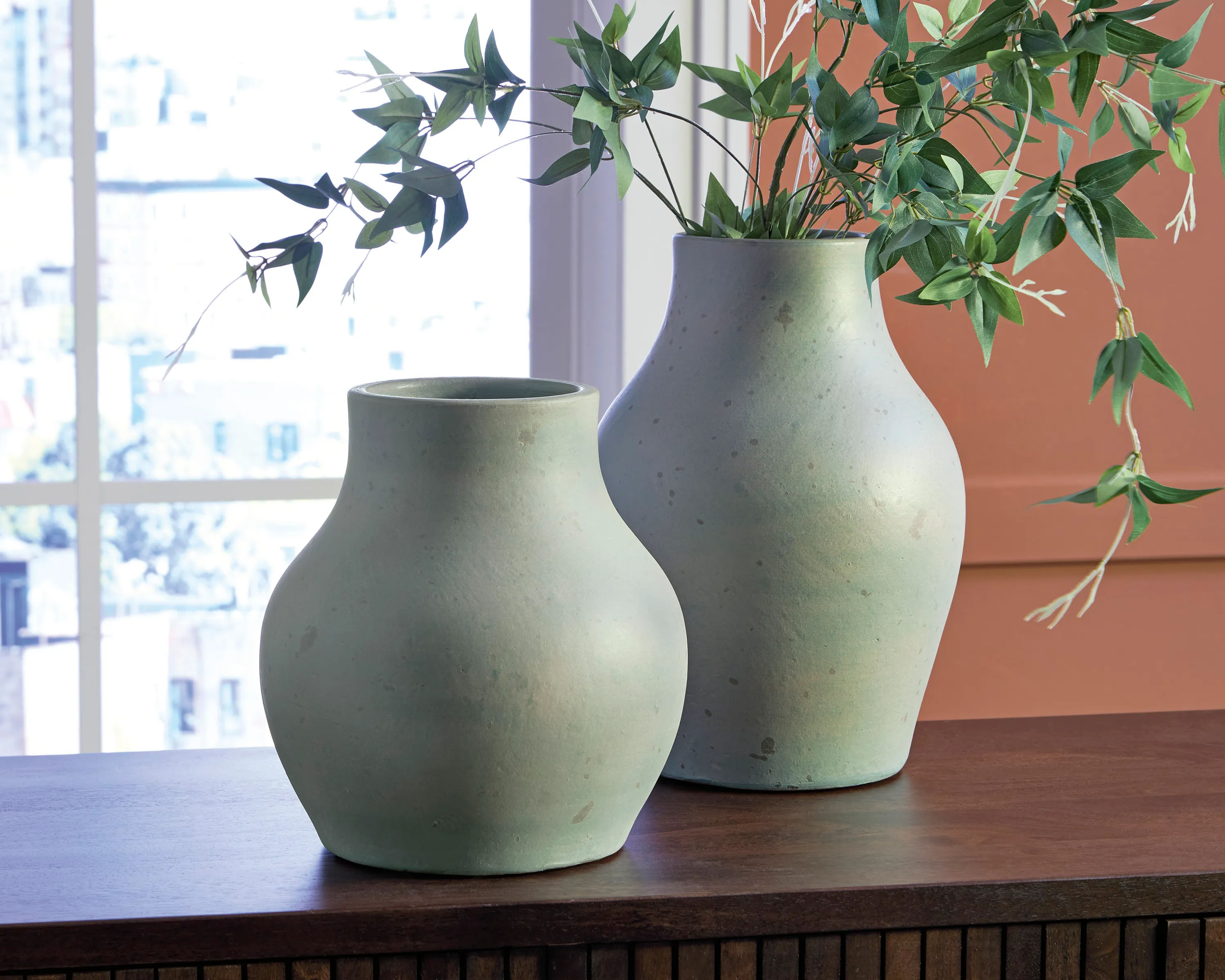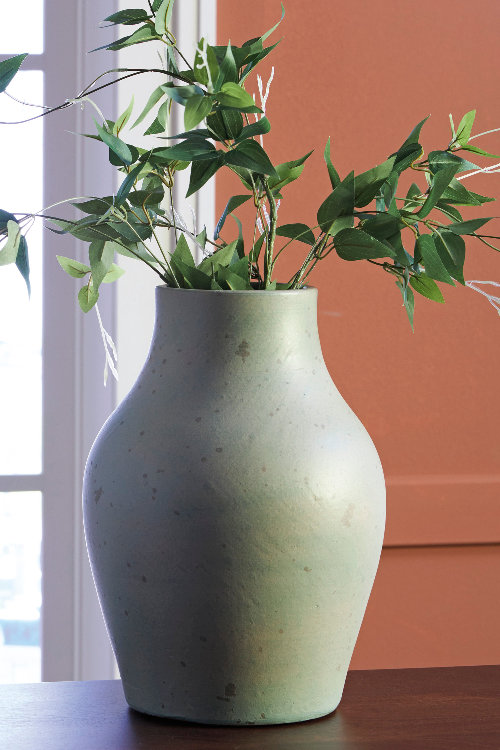 Bring a touch of rustic charm and casual elegance to your home with this terra cotta vase. The antiqued green finish gives it a beautifully weathered look, adding character to your creatively curated space. Let the piece shine on its own, or change things up and add faux florals or other decorative fillers.