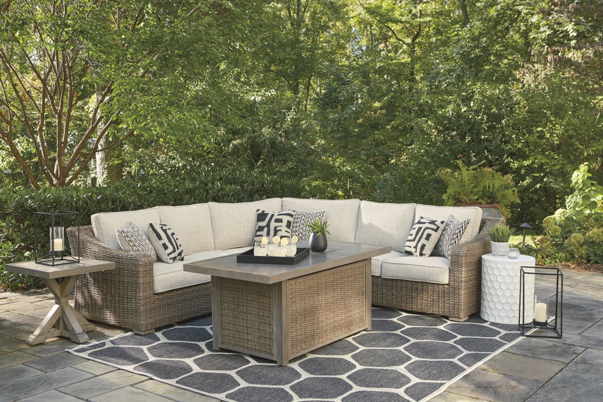 Sporting an easy-on-the-eyes look inspired by driftwood, the 3-piece Beachcroft sectional elevates the art of indoor-outdoor living. Beautiful and durable enough for indoor and outdoor use, this high-style/low-maintenance sectional entices with plush, removable cushions wrapped in Nuvella® fabric that’s a breeze to keep clean.