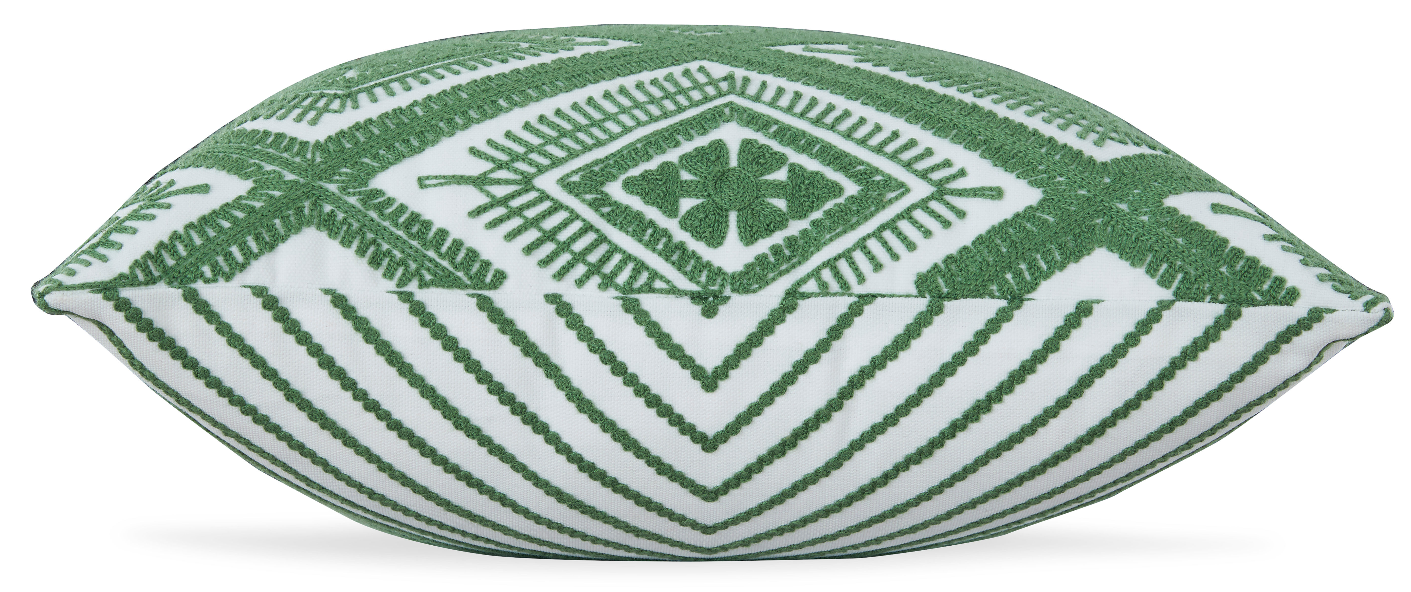 Embroidered diamond design in green and white