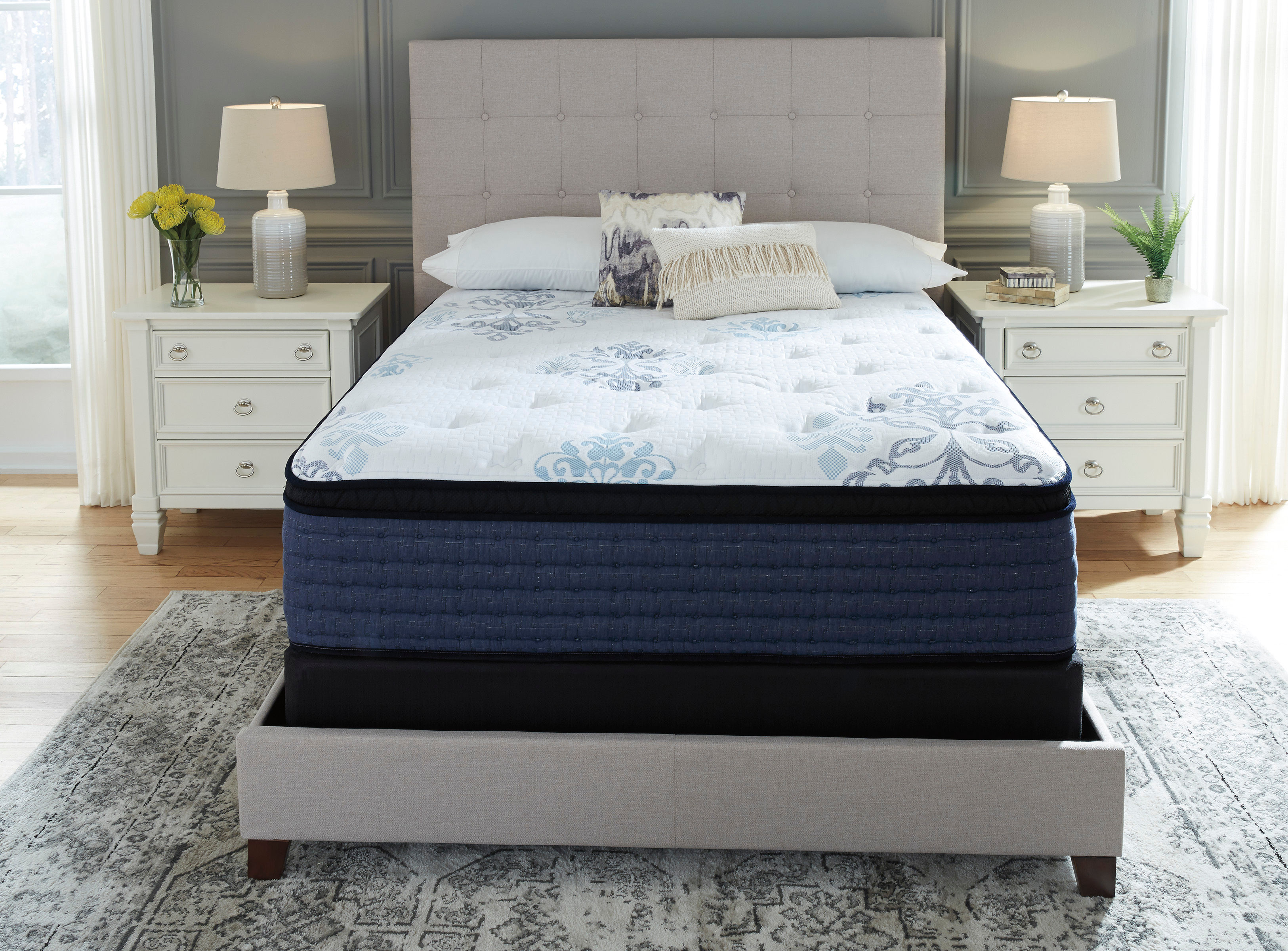 Experience the beauty of a great night’s sleep with the Bonita Springs Euro top queen mattress by Ashley Sleep®, a luxurious innerspring mattress with a dreamy feel priced to entice. Layers of soft high-density memory foam and a power packed individually wrapped coil unit hug you with conforming comfort and bring pressure point relief. Plus, a gel-infused memory foam layer enhances your comfort by delivering better support while keeping you at the right temperature. Another great perk: There's more room to spread out on this mattress, thanks to the edge support formed by its foam encasing. Foundation/box spring available, sold separately.