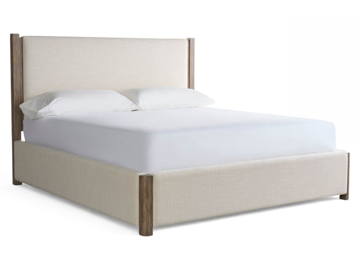 The Boulder Upholstered Bed presents a harmonious blend of comfort and architectural detail. Its warm Boulder medium-brown finish frames a softly upholstered headboard and base, creating a serene and inviting focal point for your bedroom. The bed's clean lines and natural wood accents evoke a sense of refined tranquility, perfect for a restful retreat.
