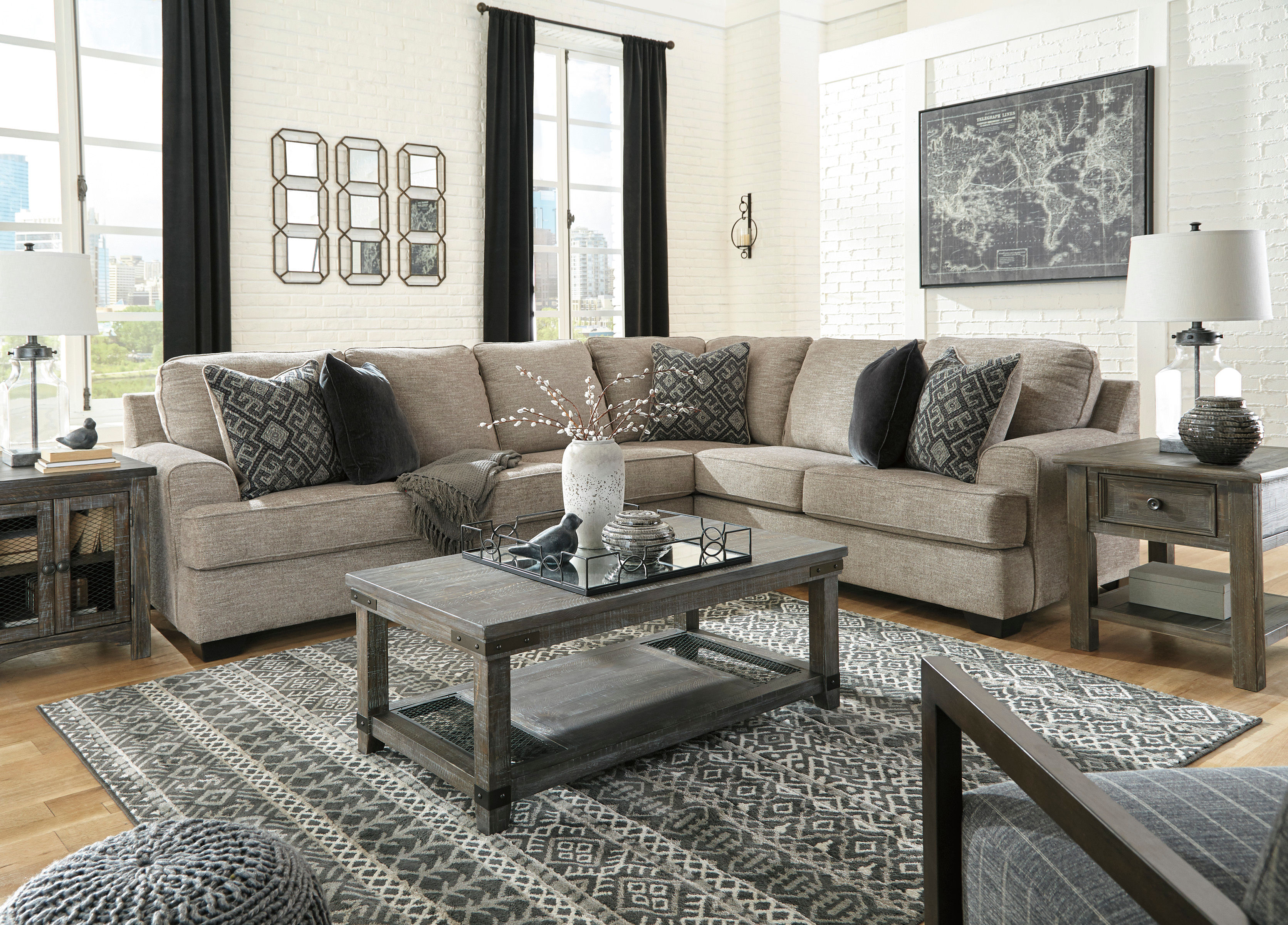 Whether your vision is clean and contemporary or cozy modern farmhouse, the Bovarian sectional in a stone-tone neutral upholstery has the corner on style. Merging ultimate comfort with striking good looks, this chic sectional includes five coordinating accent pillows for that much more feel-good allure.