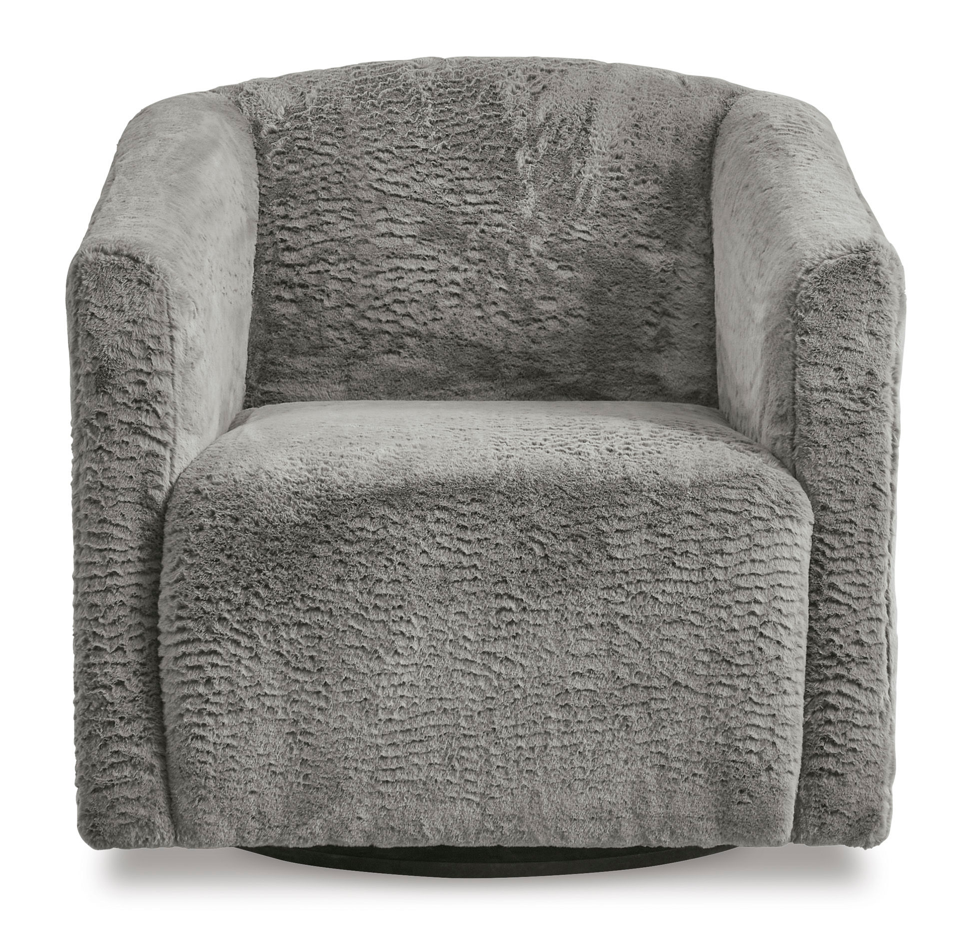 Craft a chic and cozy seating space with the Bramner accent chair. The swivel base makes it simple to hop from one conversation to another when hosting. Faux rabbit fur upholstery has a luxe look with a universal appeal. Whether you're serving up charcuterie to lounging guests or curling up with a book on your own, this chair suits your needs in style.