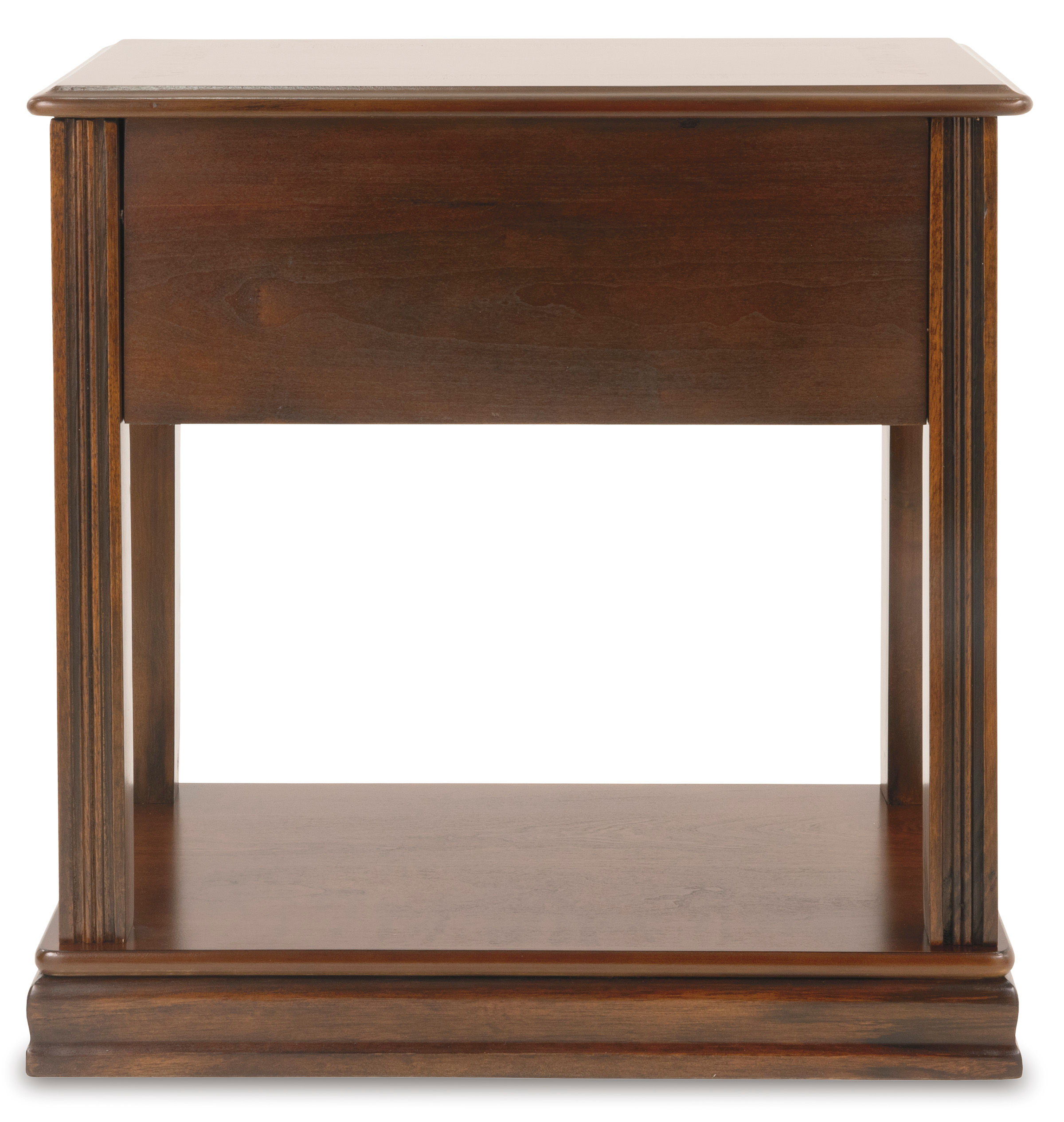 Inlay accents, fluted details and an oil-rubbed effect on the rich finish give the Breegin chairside end table such great character. The base shelf is just the place for a storage basket, decorative vase or other accent piece. You’ll love the deep drawer with removable tray offering handy storage, too.