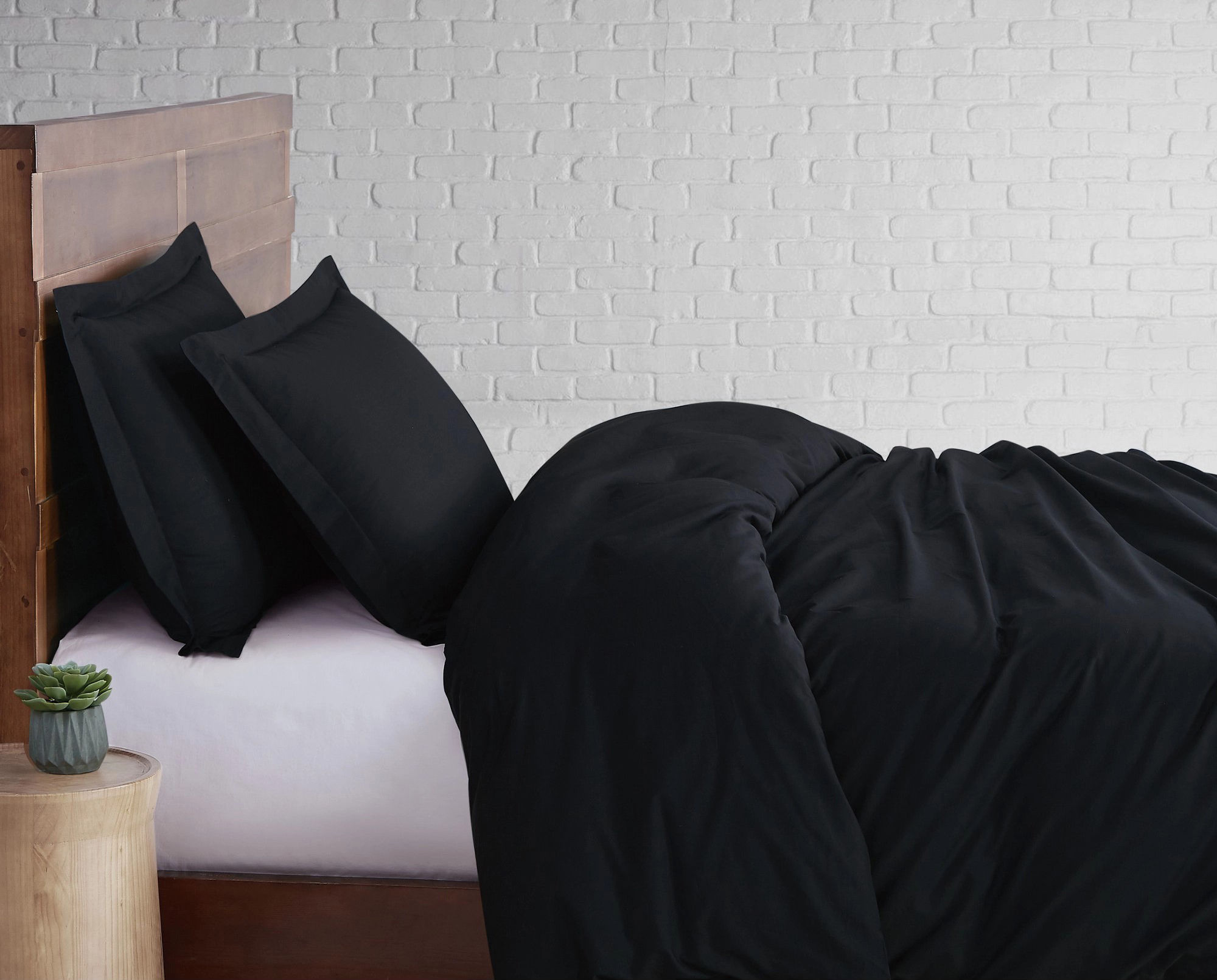 Get a good night's rest with the Brooklyn Loom queen/full duvet set in black.
