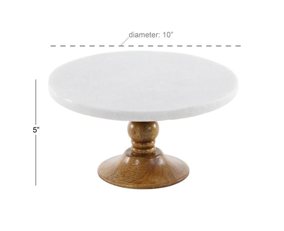 Inspired by sleek elegance and clean lines, a minimalistic design offers effortless luxury with monochromatic tones and bold, angular structures. The white decorative cake stand is crafted from a combination of marble and mango wood, creating a timeless piece. This round stand for cake highlights an oiled brown wood base topped with a matte white marble top with light gray veins, creating a sophisticated appeal. This mango wood cake stand boasts an elegant marble surface with a wooden stand, offering a stylish combination.