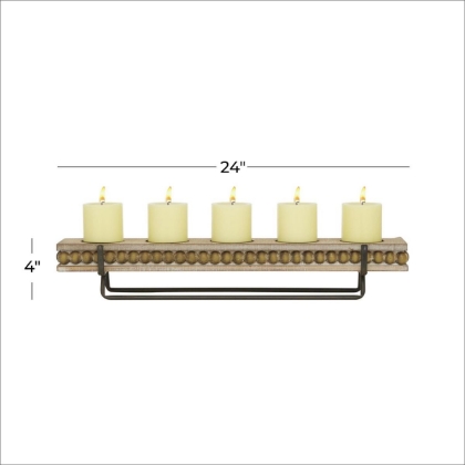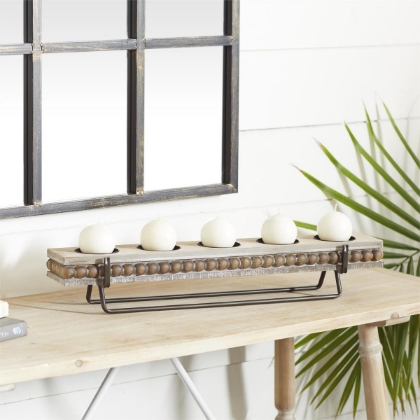 Inspired by blissful serenity and the allure of the sea, where soothing hues and natural textures bring effortless charm to the home. The brown decorative candelabra is crafted from MDF and iron for durability and longevity. The rectangle candlestick stand boasts a washed brown finish with matte black metal stands, offering a rustic yet refined aesthetic. The MDF candelabra features intricate brown bead accents and sturdy iron stands, supporting a wooden platform for five candles.