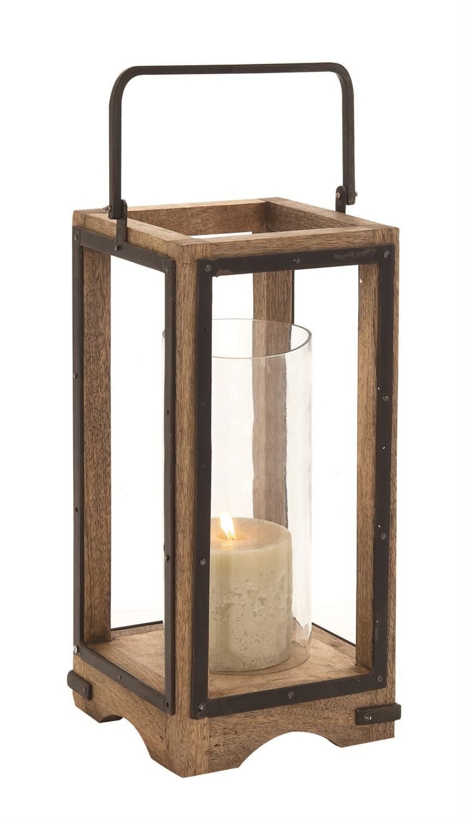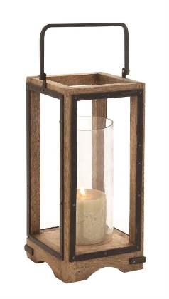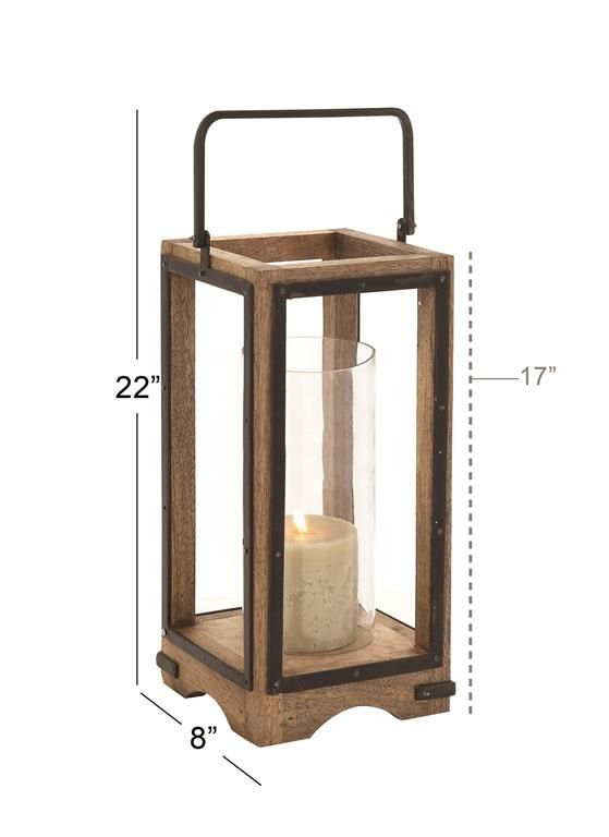 Designed with timeless sophistication, rich old-world textures and warm hues come together for a refined classic taste of luxury. The brown indoor outdoor candle lantern is crafted from iron and mango wood for a durable and elegant design. The rectangular decorative candle lantern features an oiled brown finish with black accents and clear glass candle holder for a rustic appeal. This mango wood candle lantern flaunts a cylinder glass candle holder inside a beautifully carved wooden frame with a handle.