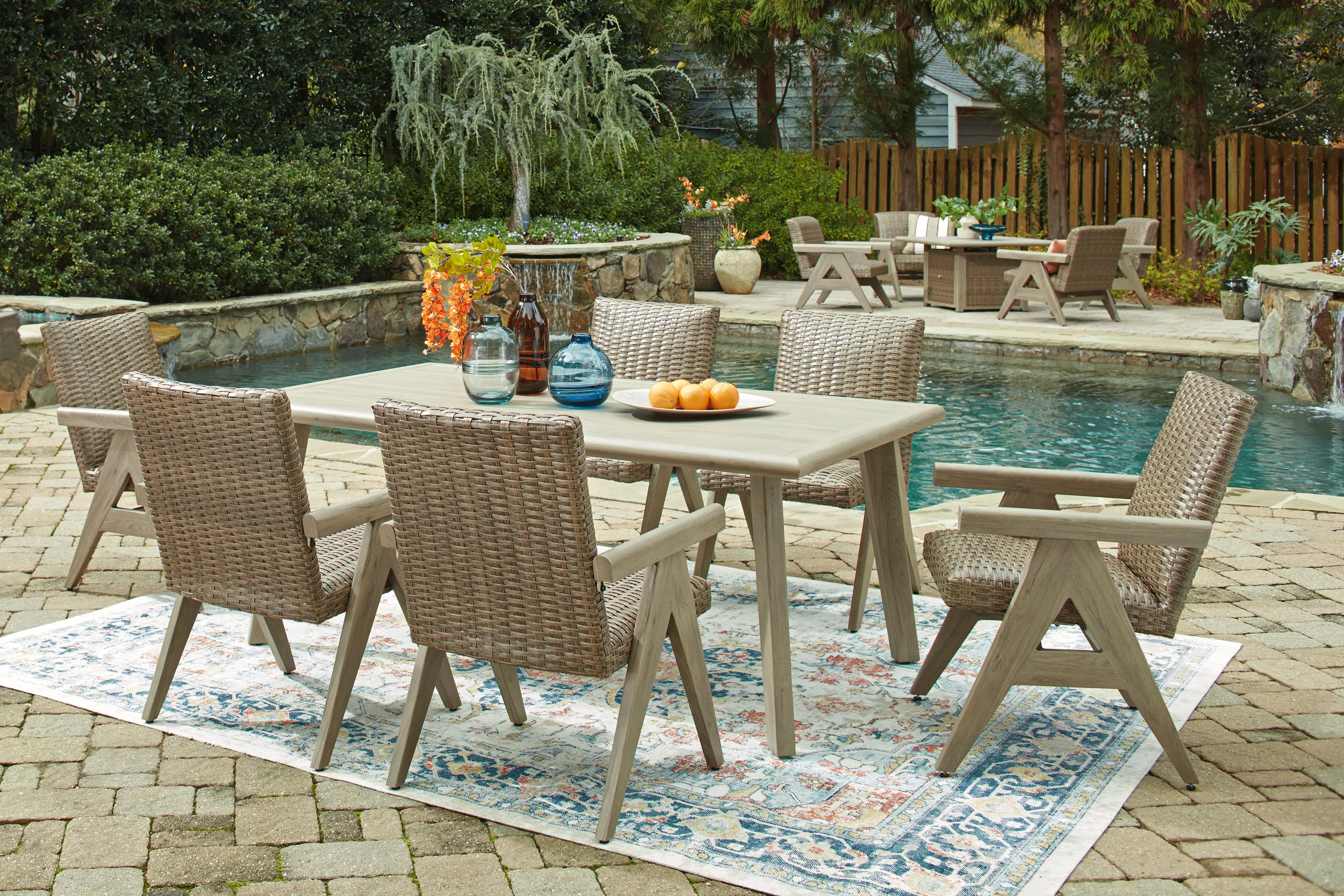 The naturally beautiful look of wood. The potential for endless days in the shade. And did we mention durability? This outdoor dining table is crafted with elevated style and everyday function in mind. With sturdy aluminum construction, it withstands the weather while making a chic statement on your deck or patio. A built-in umbrella hole keeps you covered while entertaining friends and family alfresco.