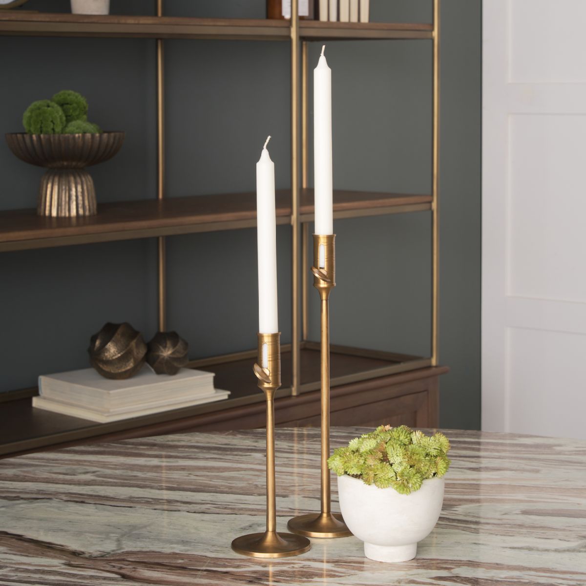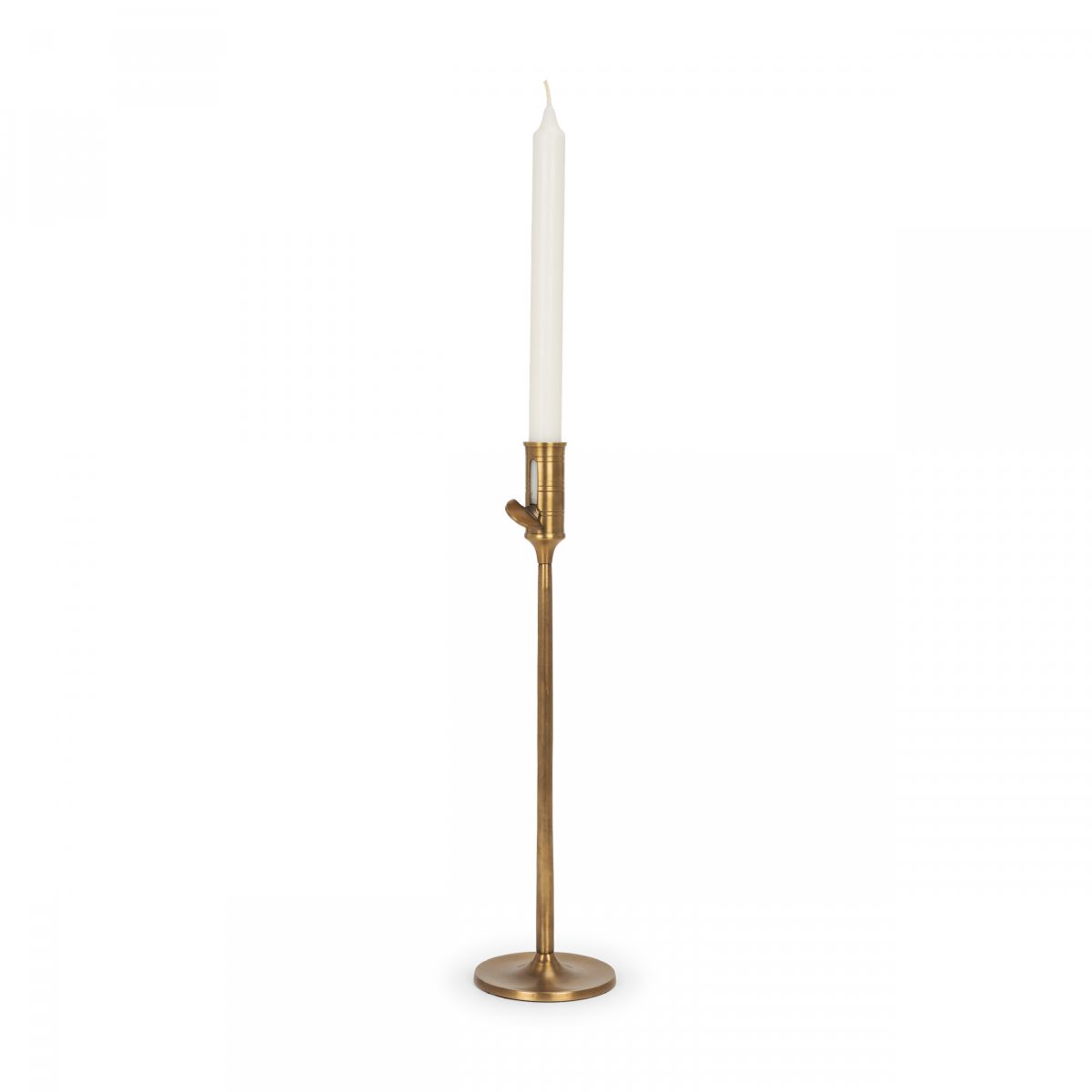 The Chantria Candle Holder is crafted from solid brass and showcases a vintage-inspired design with an adjustable height for versatile styling.