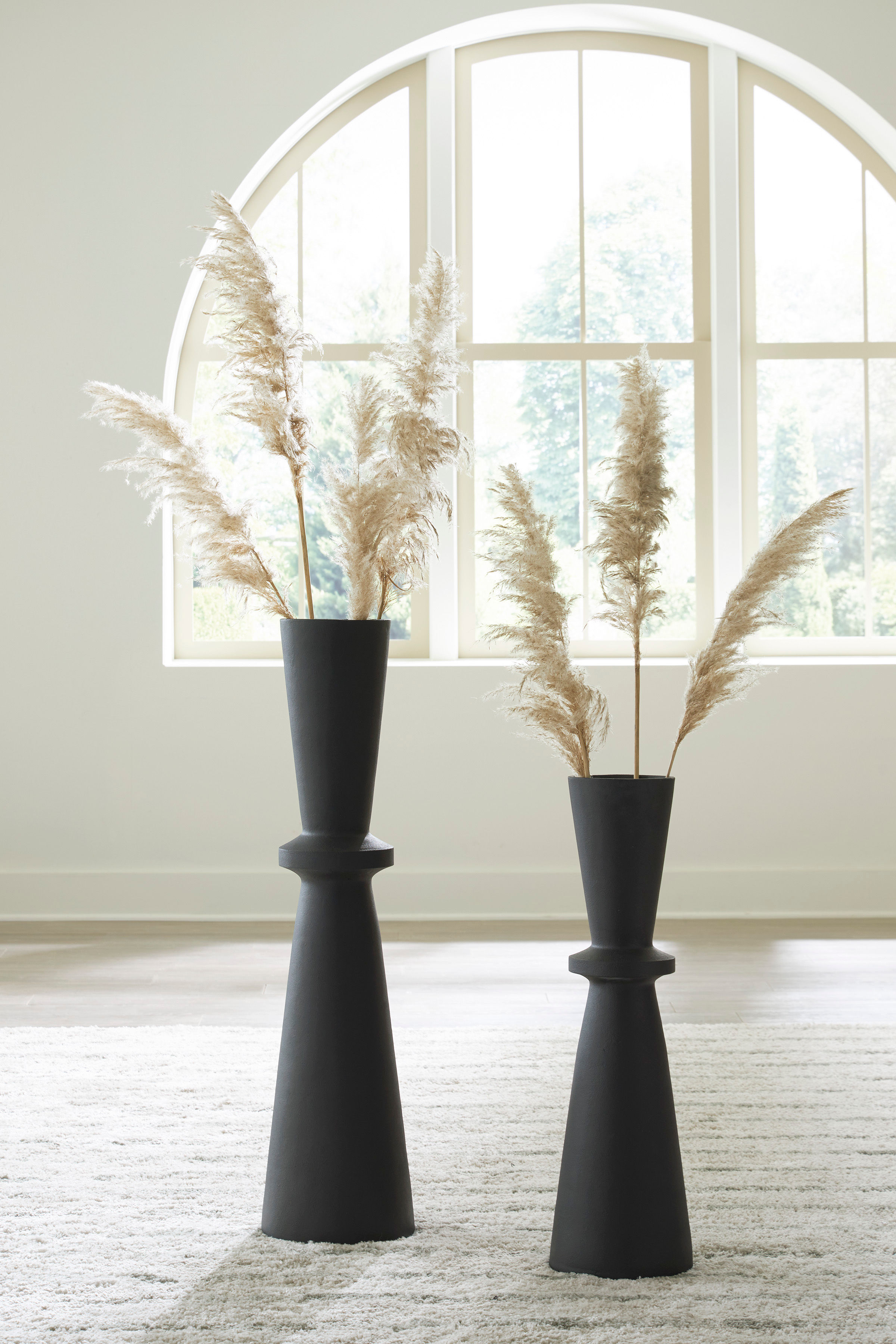 Crafted with contemporary spaces in mind, the black-hued Collisten vase is a versatile addition to your decor. Its hourglass shape and textured pattern make for an eye-catching standalone piece. Chic in an office corner or greeting guests in the entryway, this vase also acts as a high-style host for floral arrangements.