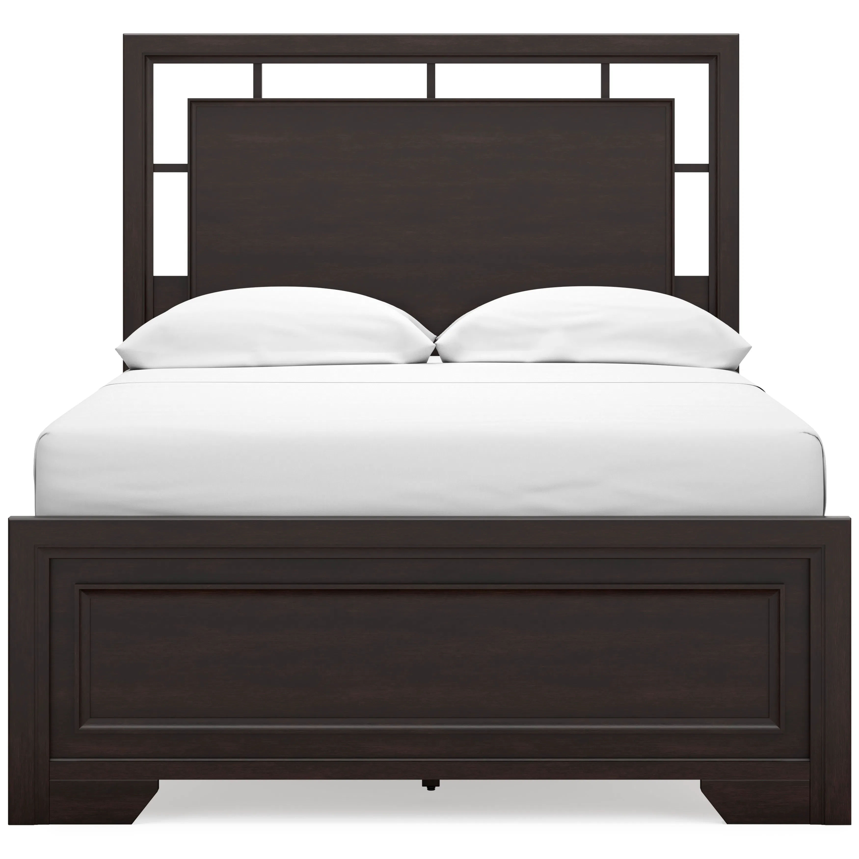 If you like the idea of a richly versatile transitional look that feels fresh and contemporary—with a timeless sensibility—then feast your eyes on the Covetown full panel bed. The modern headboard's floating panel design blends with the classic-inspired picture frame footboard to create a stunning look that's neither too stuffy nor too trendy. Such a refined way to wake up your bedroom style.