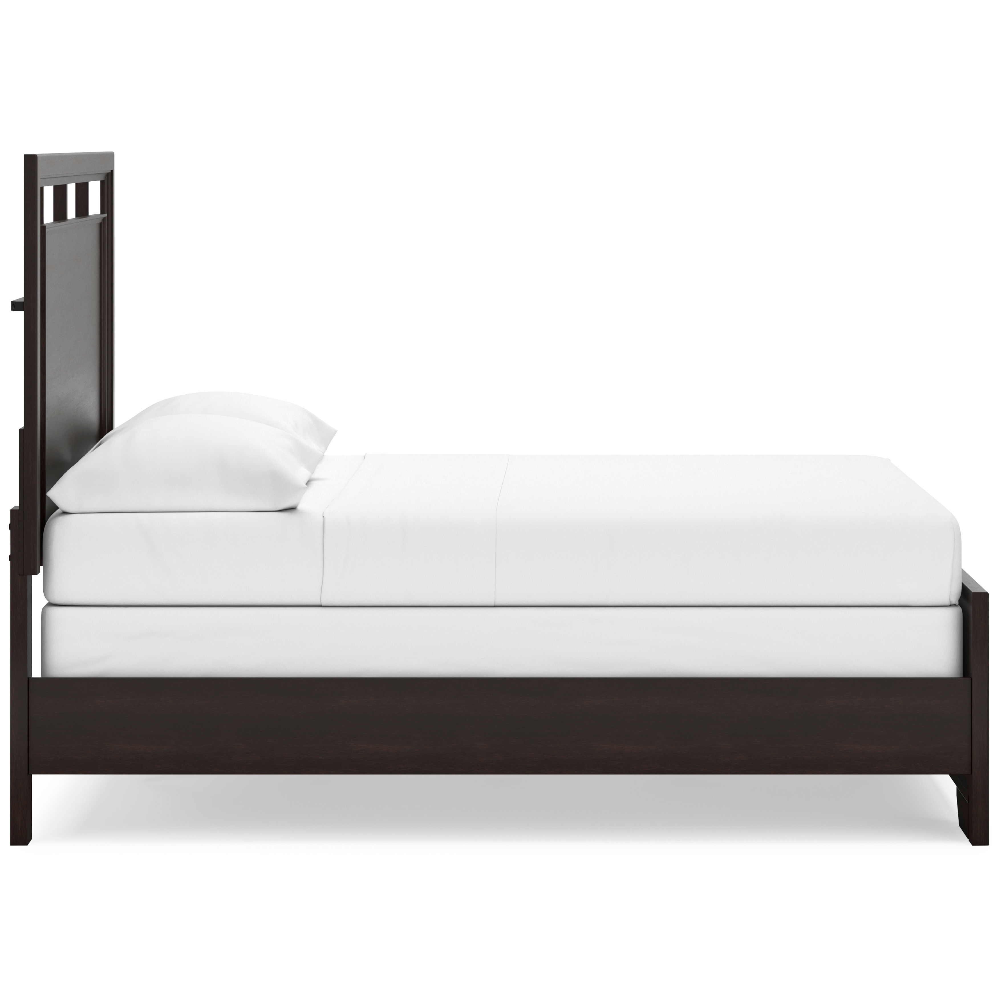 Includes panel headboard, footboard, rails and slats