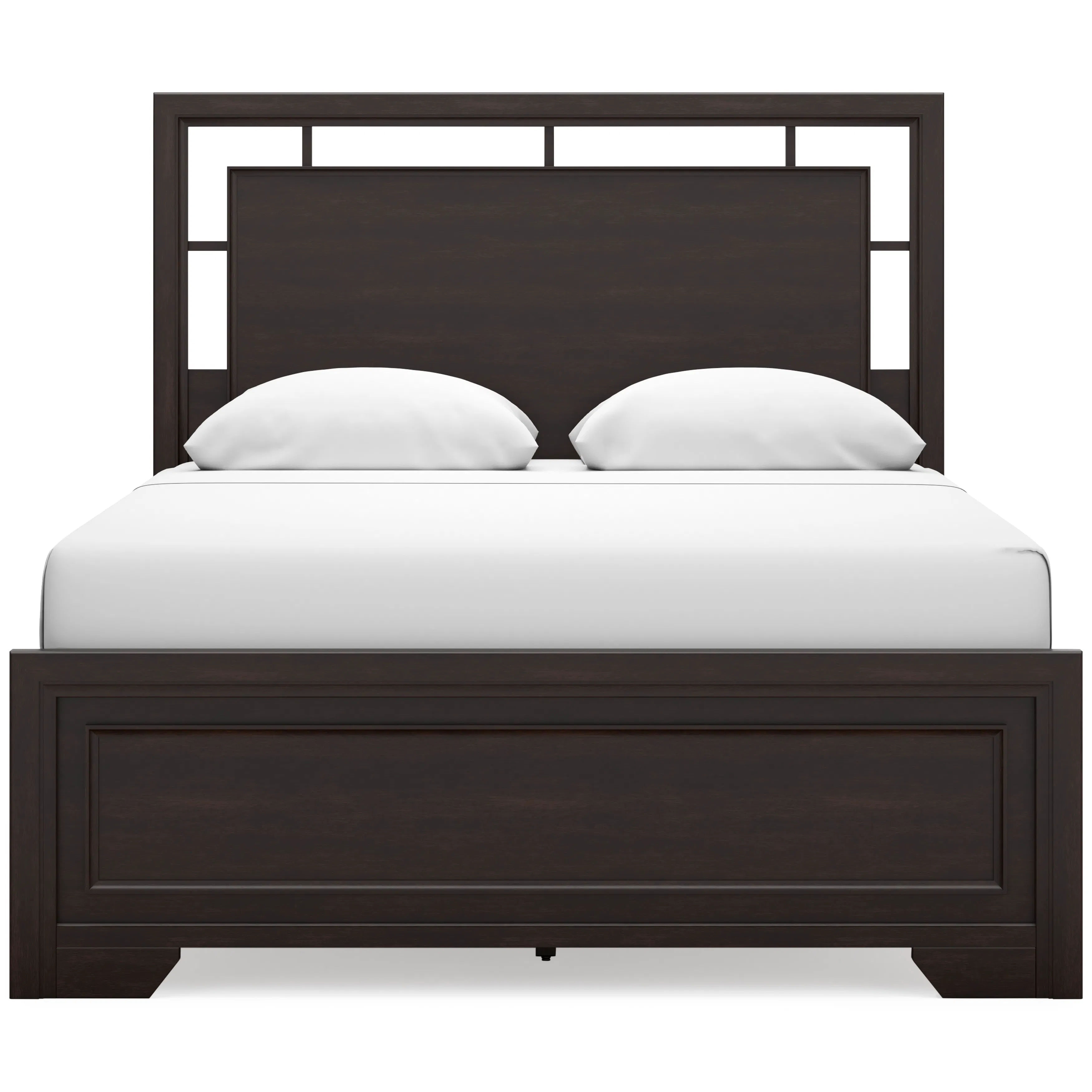 If you like the idea of a richly versatile transitional look that feels fresh and contemporary—with a timeless sensibility—then feast your eyes on the Covetown queen panel bed. The modern headboard's floating panel design blends with the classic-inspired picture frame footboard to create a stunning look that's neither too stuffy nor too trendy. Such a refined way to wake up your bedroom style.