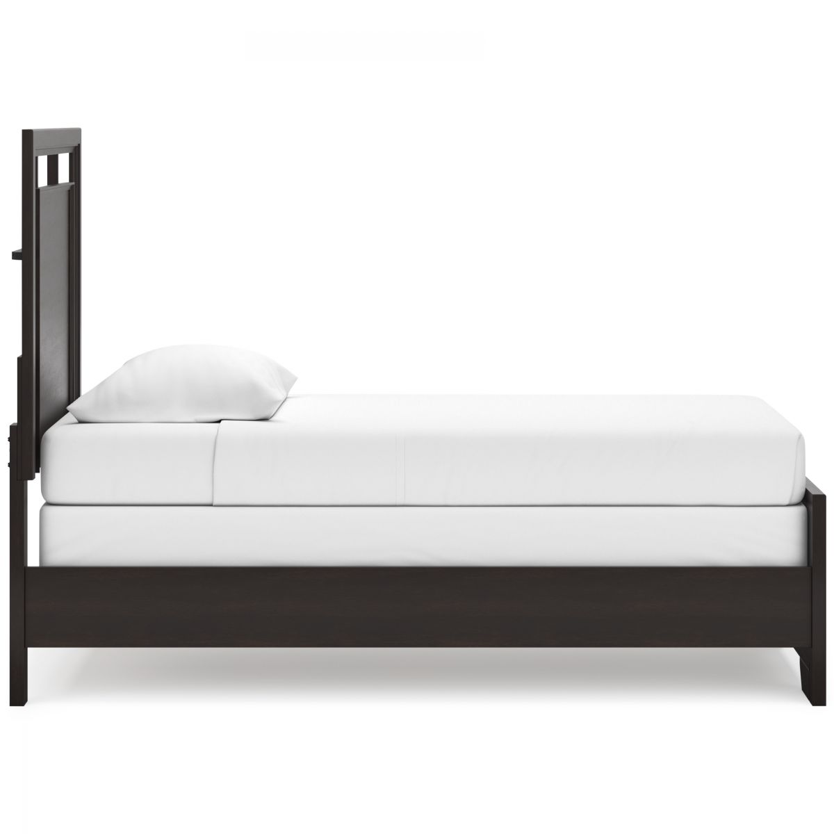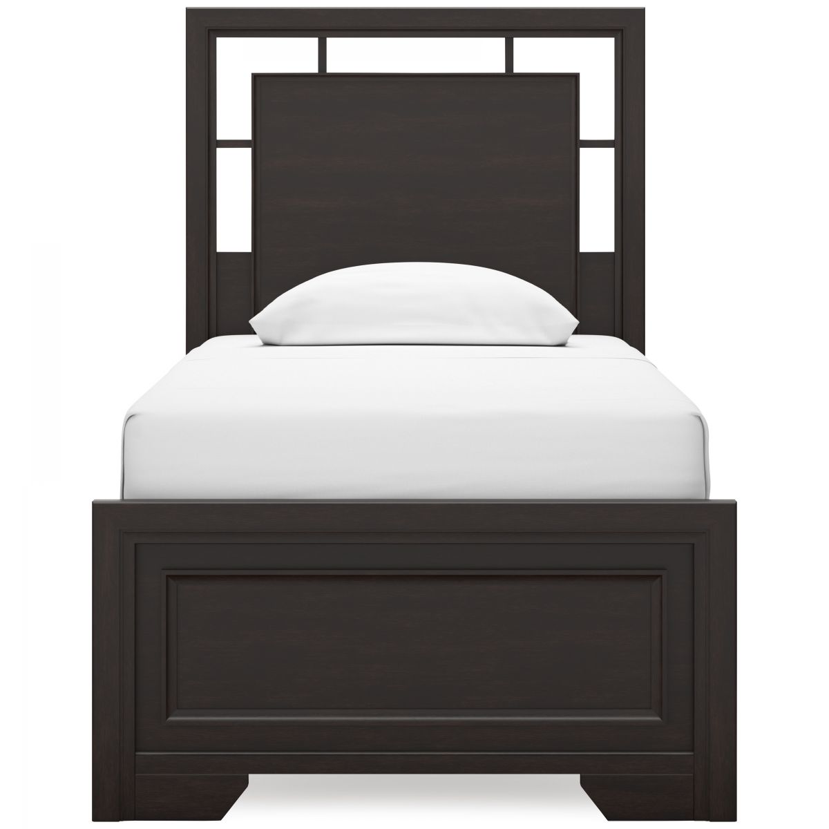 If you like the idea of a richly versatile transitional look that feels fresh and contemporary—with a timeless sensibility—then feast your eyes on the Covetown twin panel bed. The modern headboard's floating panel design blends with the classic-inspired picture frame footboard to create a stunning look that's neither too stuffy nor too trendy. Such a refined way to wake up your bedroom style.