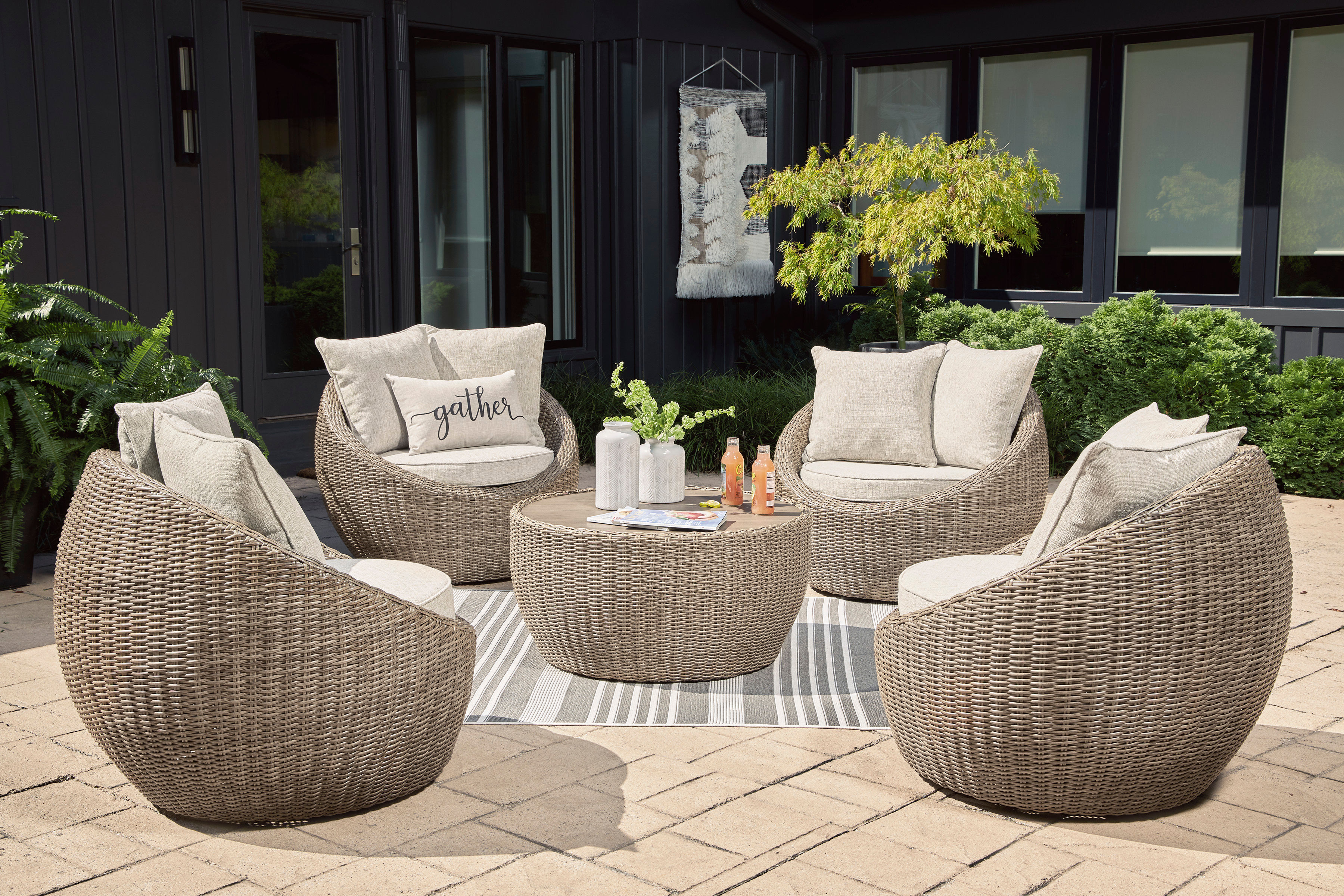 The Danson coffee table completes your outdoor seating area with its fresh take on casual comfort. Handwoven resin wicker over a curving frame balances streamlined style and exceptional durability. An aluminum top polishes off the piece, acting as a perfect perch for snacks, beverages and decor.