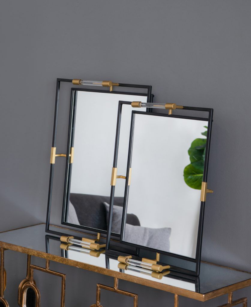 Orchestrate your space with the classic design of the Tribute set of 2 trays. These striking trays with their black and gold finish and mirrored base complement a variety of decor styles. A perfect match for contemporary, glam, Art Deco, and eclectic themes, this set can be easily integrated into your existing decor.
