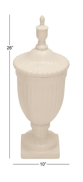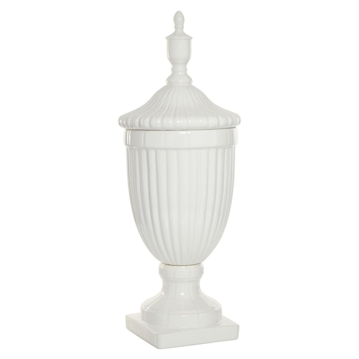 Designed with cozy charm, natural warmth, and timeless romance to create a wholesome atmosphere. Constructed from solid dolomite materials, this white living room decorative jar exhibits an exquisite level of craftsmanship. Amphora decorative storage jar boasts a polished white finish, finial top, and textural vertical ridges on a decorative block base. This dolomite decorative jar comes with distinctive features such as an amphora-shaped body coupled with a finial-style lid, adding to their aesthetic appeal.