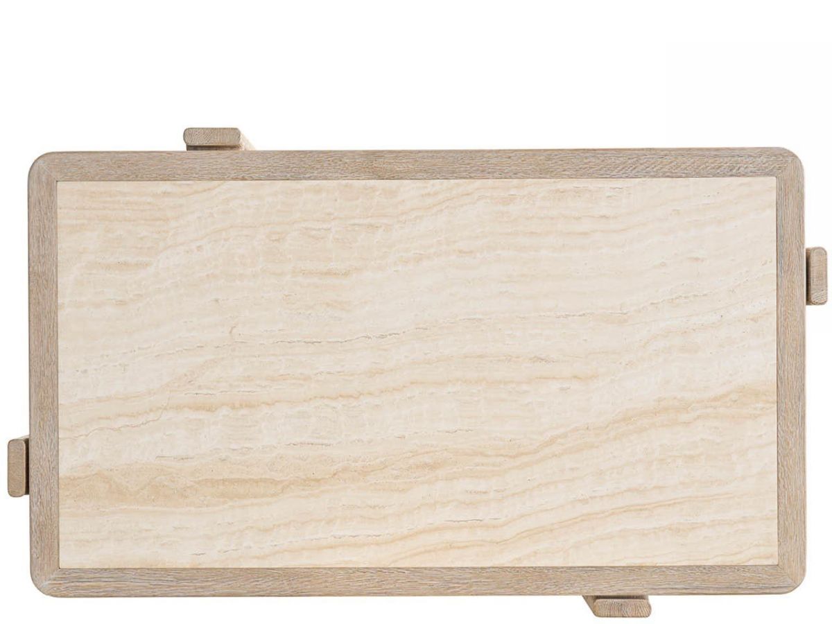 The Desert and Stone Cocktail Table presents a harmonious blend of textures and tones. The light Desert wood finish provides an airy complement to the cool, natural stone top, creating a sophisticated and inviting centerpiece for your living room.