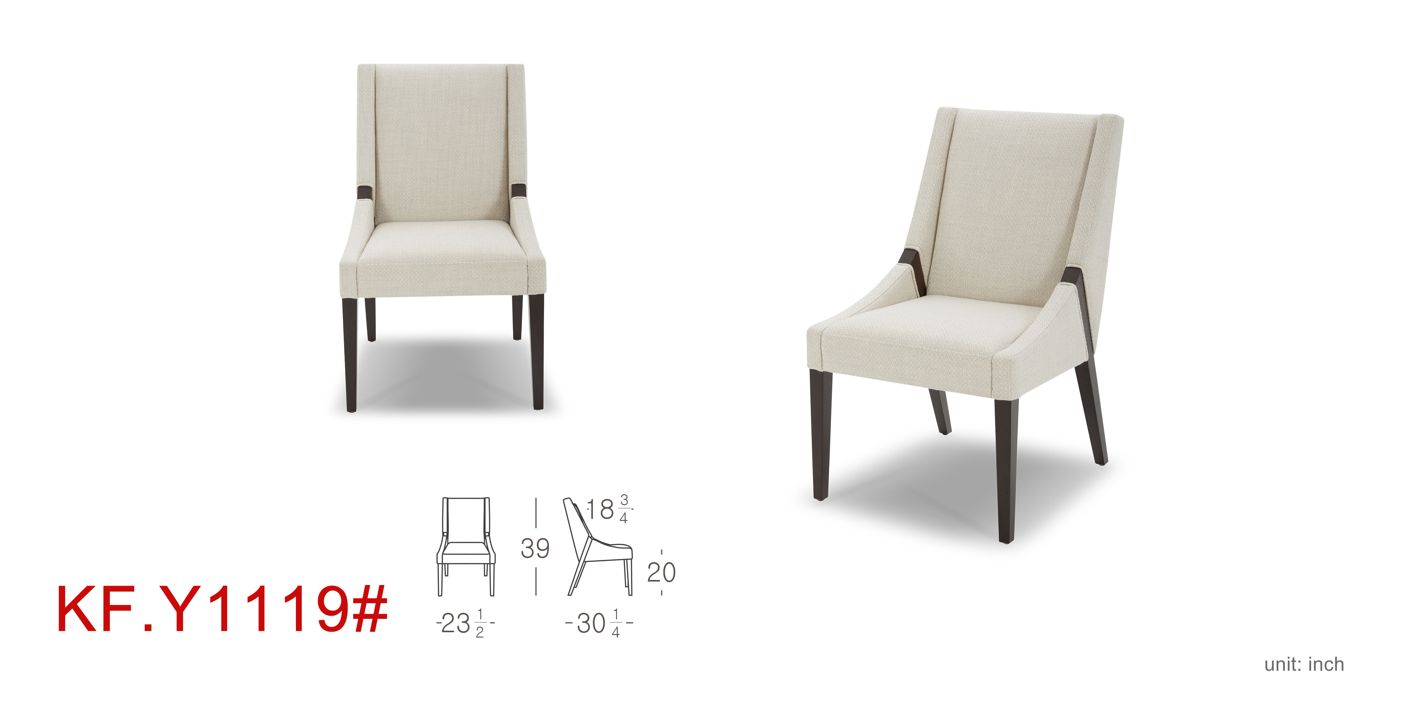 Bring elevated style, mixed materials, and sink-in comfort to dining and gathering spaces with this dining chair. This dining chair features a casual style that takes a modern, minimalist approach to design. Made with a beige fabric upholstery and wooden legs with a dark brown finish, this chair doesn't sacrifice comfort for style.