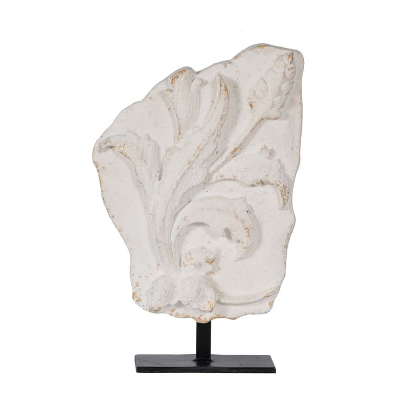 Featuring a delicate floral design, an aged white finish, and a sturdy black stand, the Small Distressed White Table Decor infuses any space with a classic,sophisticated feel. Add this piece to a vintage dining room, grand living room, or traditional office for an understated, lavish look. For a cohesive design, pair with the Large Distressed White Table Decor and fill your home with grandeur and style.