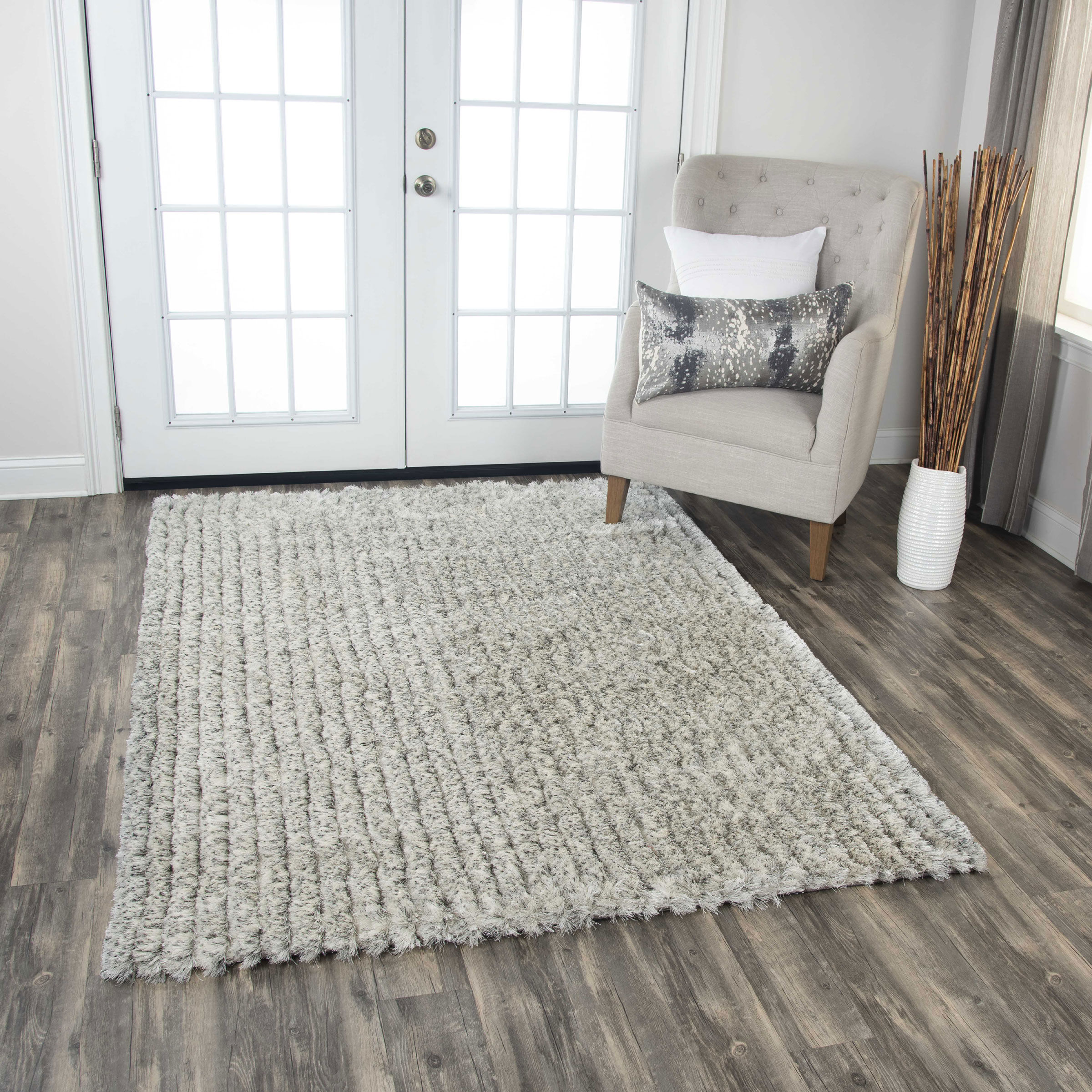 This neutral shag creates a foundation for any style of decor! Hand Tufted using super soft, thin strands of Polyester. Mixing shades of color adds depth that is then taken to the next level by hand carving a linear pattern to add architectural interest.