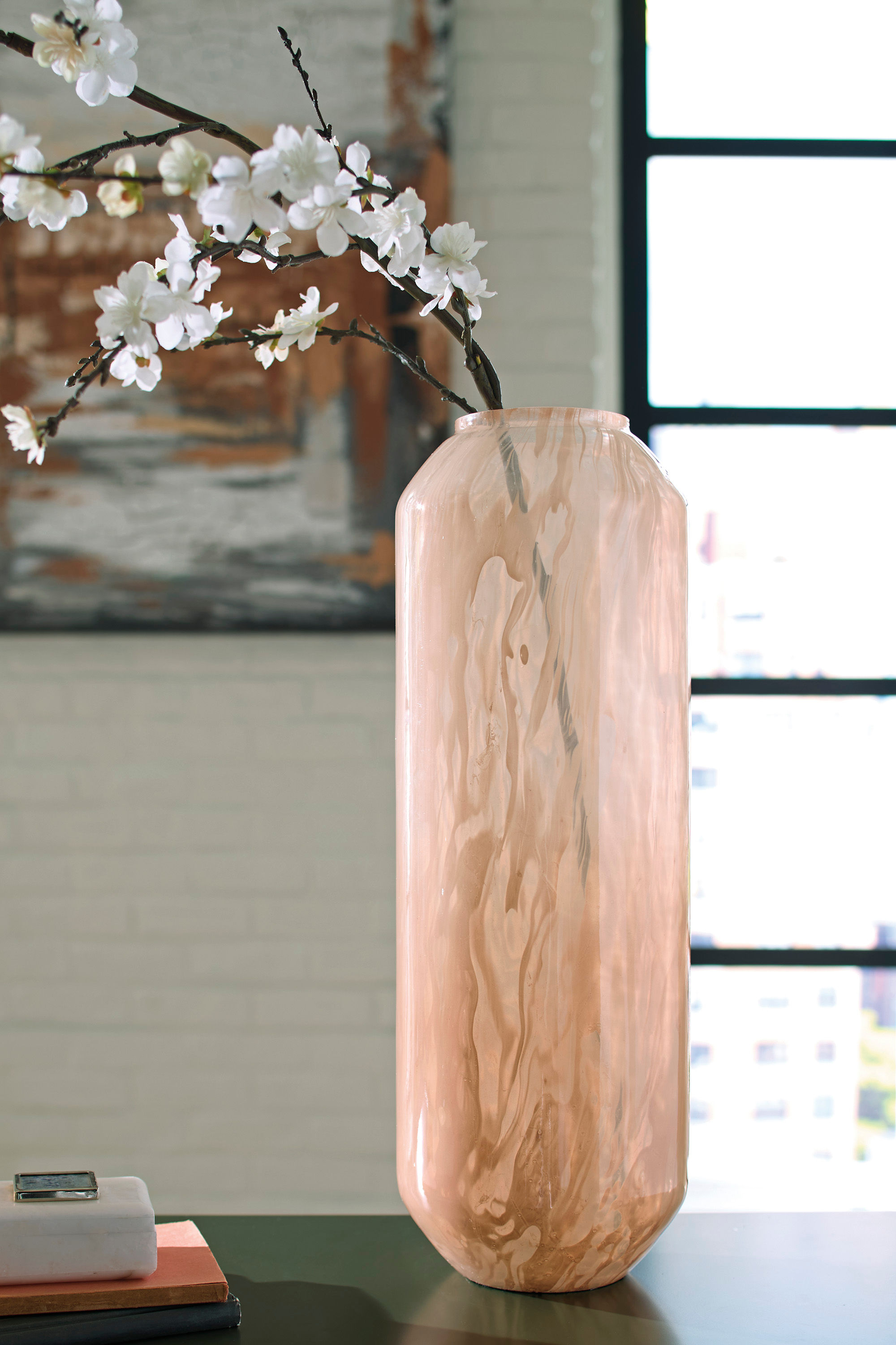 Form and function at its finest, this vase has a chic sensibility that elevates your decor. Its contemporary silhouette is topped in a blush pink finish and flowing swirls, complementing a myriad of palettes with understated elegance. If you're seeking forward-thinking style, this piece is a perfect fit.
