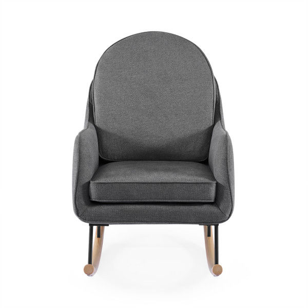 Add a stylish and sustainable seat to your nursery (or any other room in the house!) with this Ella Rocker by Delta Children. Upholstered in LiveSmart Evolve fabric, it brings together three incredible qualities to create a superior performance fabric: recycled fibers, water repellency, and stain resistance. Made with at least 30% of high-quality polyester yarn created from recycled post-consumer plastic bottles, this durable fabric helps divert plastics from landfills. Plus, it’s as comfy and beautiful as it is good for the environment. Designed with modern rounded curves, a metal base and solid wood feet, this rocking chair includes a movable lumbar cushion for additional support. The perfect choice for busy families, its stain-resistant and moisture repelling abilities make it the smart choice for high traffic areas like the nursery or living room. Now, you can live worry-free from stains or spills AND be a part of positive change! Pair with the coordinating Ella Ottoman to complete the look. Available in Limestone, Stone Grey, Slate Blue and Ivory.