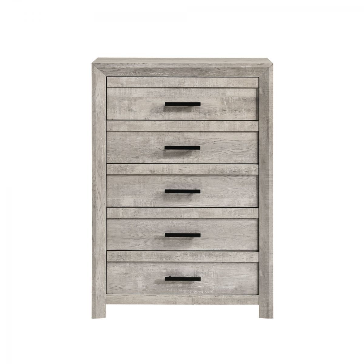 The Ellen White chest of drawers is the epitome of chic sophistication. With its sleek white finish and stylish black drawer pulls, this 5-drawer chest exudes modern elegance. The Ellen White chest of drawers offers versatility for all living spaces. Whether you're looking to revamp your master suite or add a touch of style to a guest room, this 5-drawer chest is sure to impress.