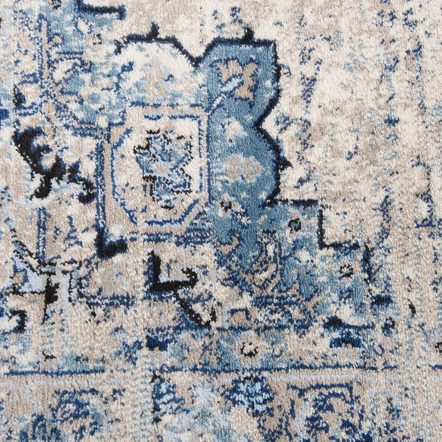 This beautiful area rug from Rizzy Home's Encore Collection features a navy blue, jet black and ivory, color palette in a traditional Persian Mina-Khani design with traditional medallion artistry and distressed vintage charm. Crafted of polypropylene, this rug not only adds a touch of elegance and sophistication to any room, but can also withstand heavy traffic while being stain-resistant. This rug's unique aesthetic will create a unique style statement to complement any decor with classic timeless design.