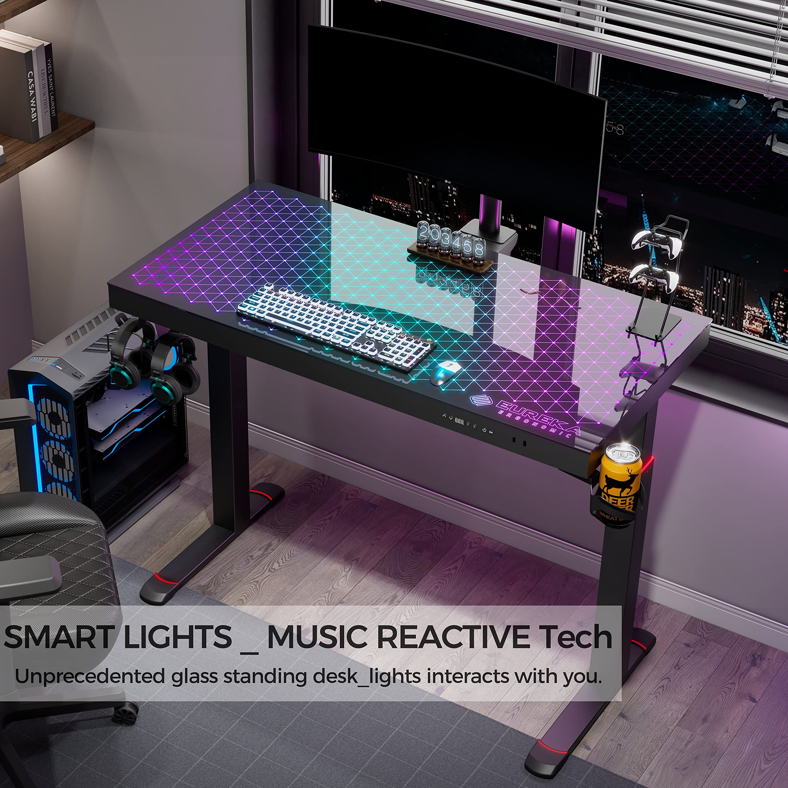 GTG 47"/55" Spectrum RGB Glass Standing Desk brings you the ultimate gaming setup, with advanced dual motor sit stand technology and immersive RGB lighting.