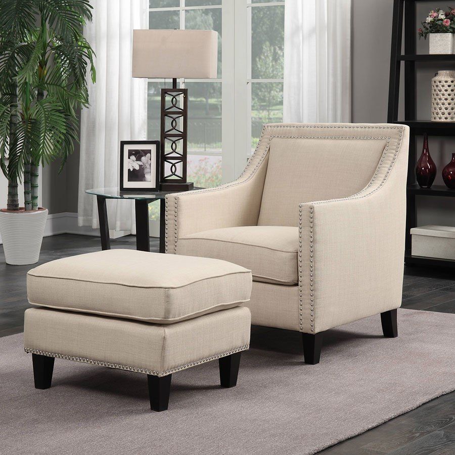 This Erica accent chair a refreshing combination of contemporary design with a touch of vintage flare. Clean lines, accented by metal stud trimming, make this a fresh way to sit in style.