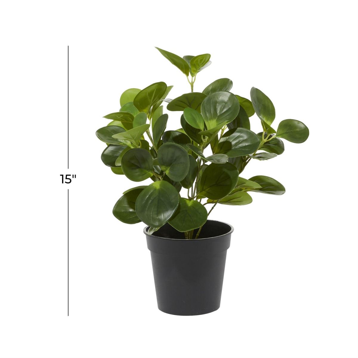 Designed with timeless sophistication, rich old-world textures and warm hues come together for a refined classic taste of luxury. The green indoor outdoor artificial plant is crafted from durable polyethylene and iron for a realistic look. Bell artificial greenery features a matte black finish paired with vibrant green leaves, creating a striking contrast. This faux foliage artificial plant features a sleek black round pot, perfect for any flat surface.