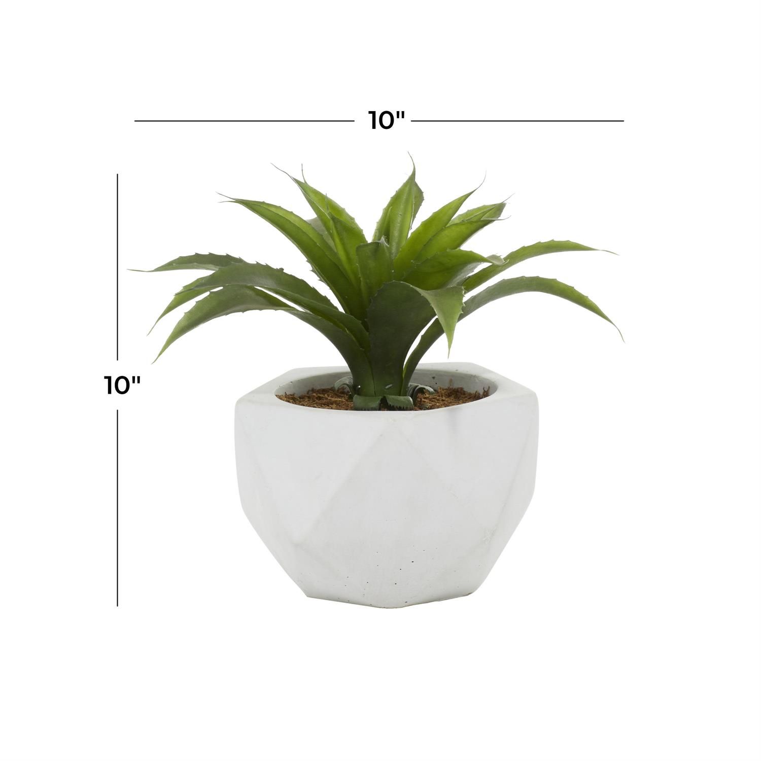Embrace artistic expression with a style that highlights bold designs with sleek lines, neutral elements, and a minimalist aesthetic. Green indoor outdoor artificial plant is crafted using PVC, Styrofoam, and ceramic for durability and style. Round artificial greenery carries polished green leaves and a faceted white planter, creating a vibrant and modern aesthetic. This faux foliage artificial plant features a tabletop size with a natural shrub arrangement in a sleek cylinder pot.