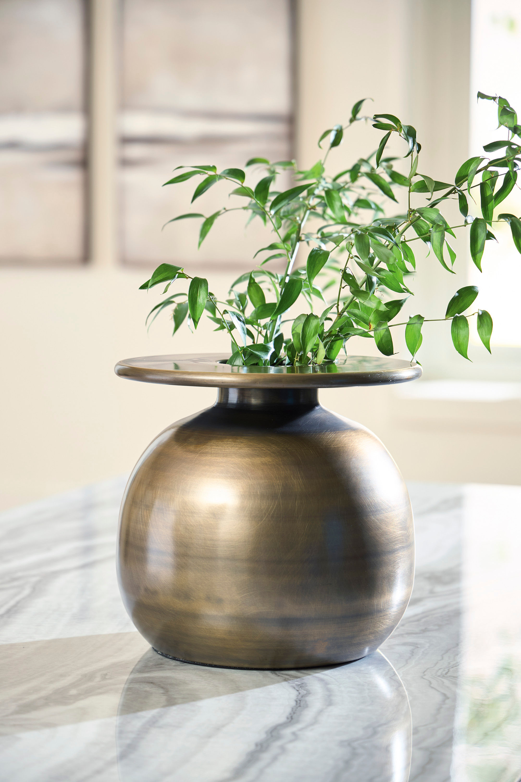 Bold yet refined, this vase is a luxe reflection of your contemporary tastes. Its sleek styling is made all the more elevated with an antiqued brass-tone finish. Stage this piece with dried stems, or leave it empty for a minimalist look.