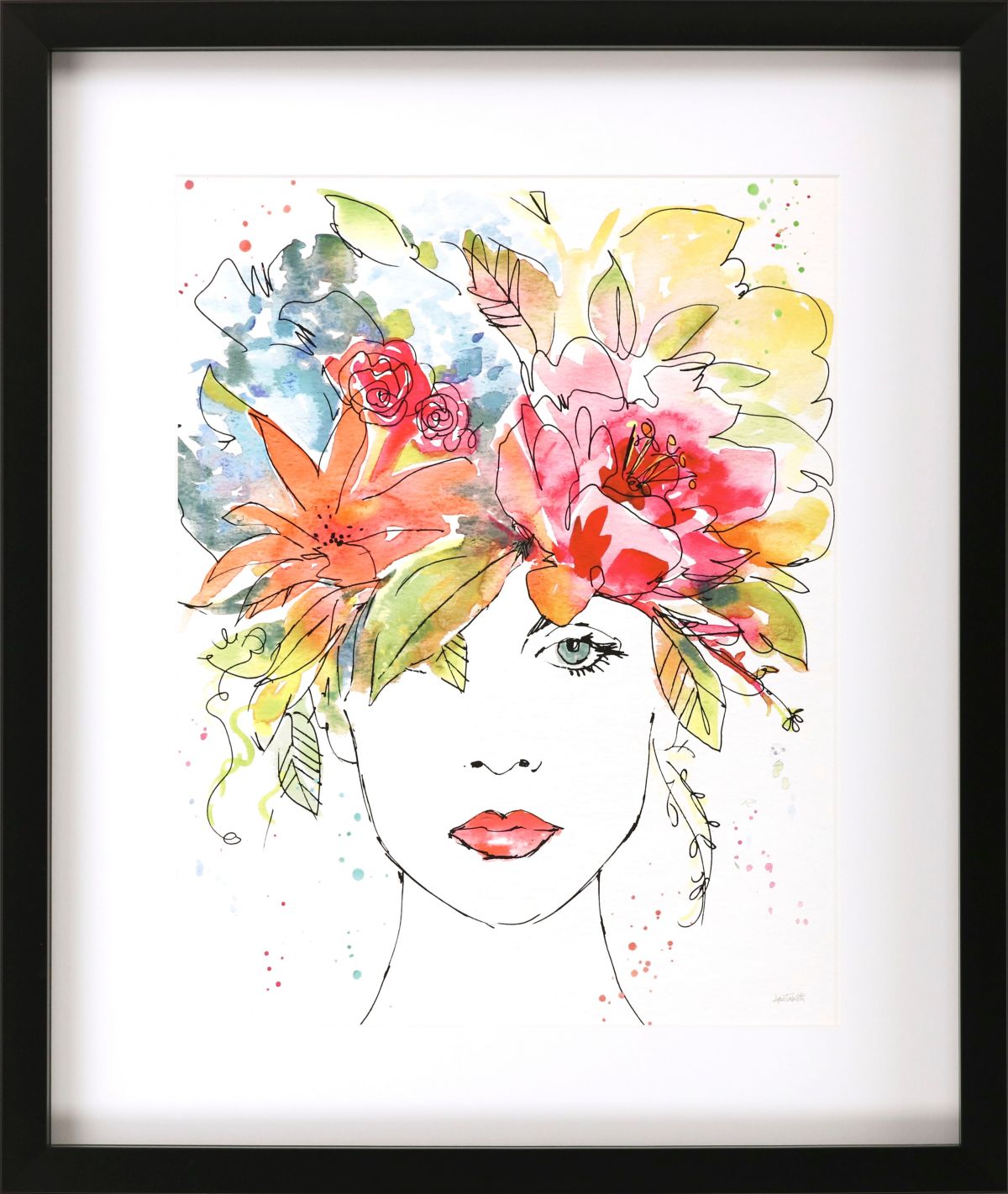 The Floral Figure I Wall Art piece features a design that has a face of a woman with bright and colorful flowers coming from the top of her head. This design makes the empty walls in your home pop with color and visual interest, as well as enhancing the casual contemporary style of any room. Vertical orientation only.