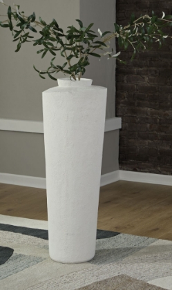 Simply chic. With its textured pattern and asymmetrical top, this cream-colored floor vase is a subtly stylish addition to your decor. Refresh the look by switching out your favorite faux floral arrangements from season to season.
