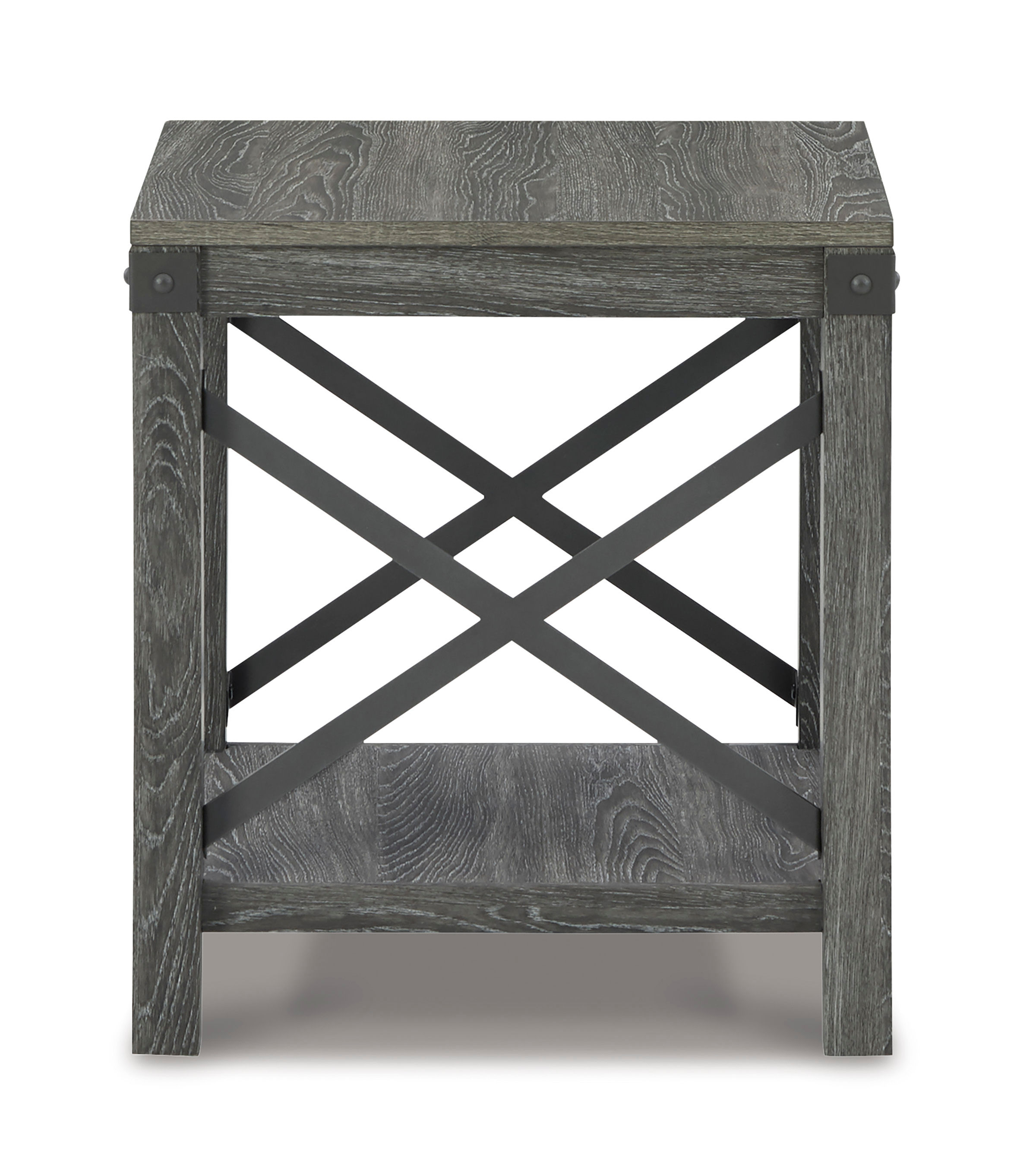 Open the door to modern farmhouse style with the Freedan square end table. The beautiful woodgrain look and classic crossbuck metal accents are a cool touch, while the lower shelf provides surface space for fashionable home accessories.