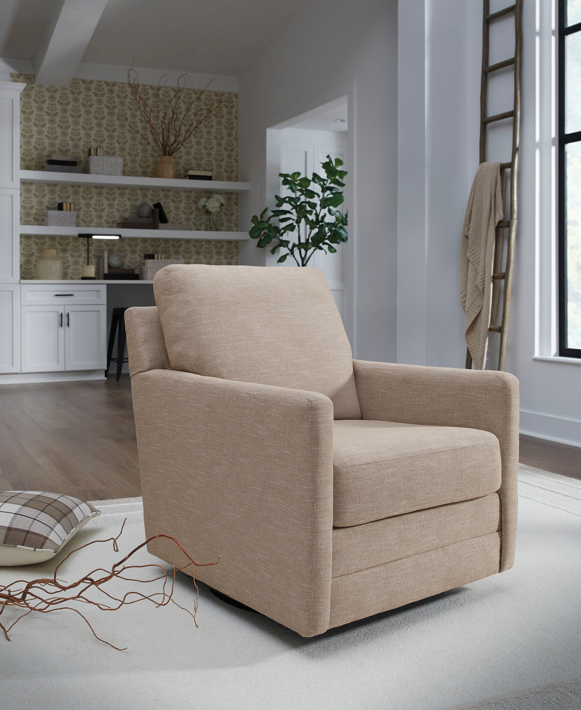 A casual design with plush cushioning, the Freybourne swivel accent chair has neutral upholstery to fit in any style of home. This accent chair is upholstered with Next-Gen Nuvella fabric, making it durable with a high UV resistance.