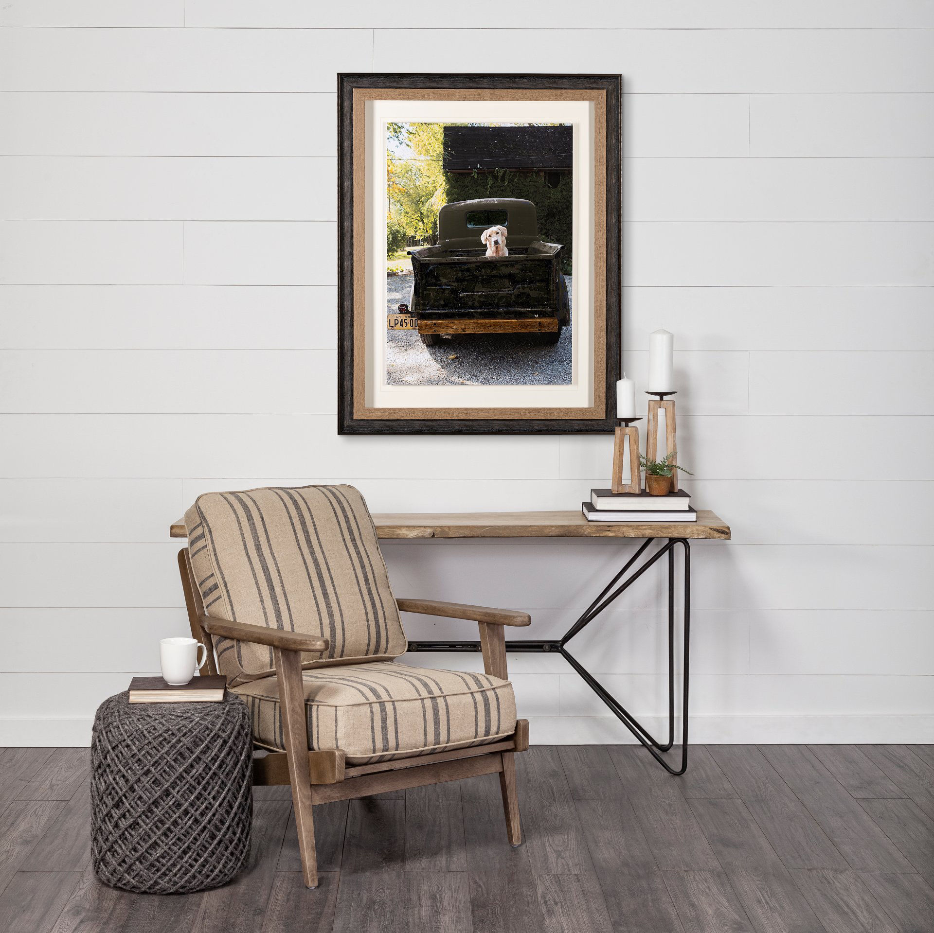 "Get Out of Dodge Hunter Green" by Mercana is a nostalgic photographic art print capturing a playful puppy nestled in the back of a rustic, vintage truck. The piece features a serene blend of earthy greens and browns, beautifully contrasted with the dog's soft fur, exuding warmth and comfort. Hand-embellished to enhance its rich textures, this artwork draws inspiration from timeless moments of joy and innocence, inviting you to embrace life's simpler pleasures.
