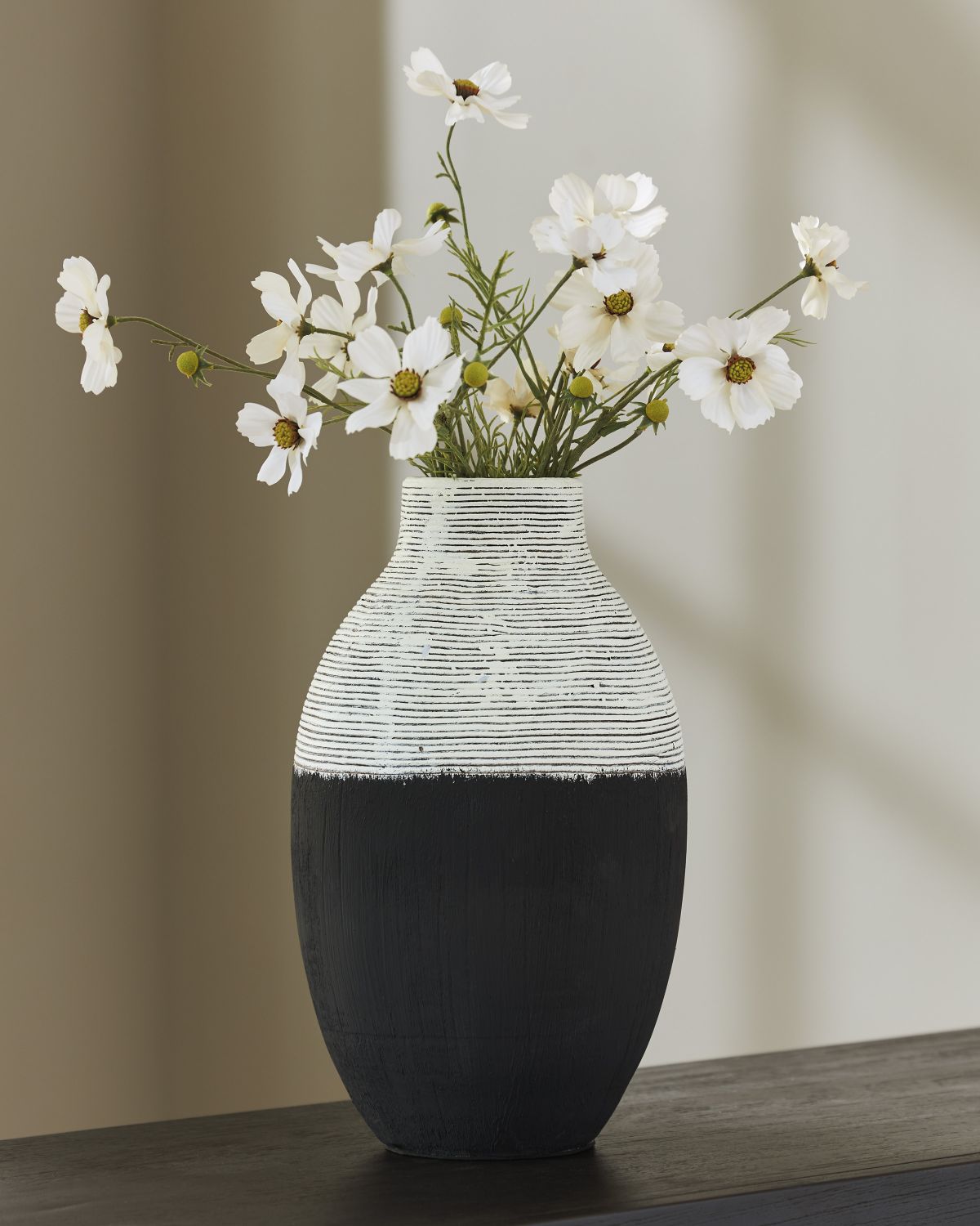 Curate a chic centerpiece or punctuate the end of a mantel with this vase. Its two-tone finish is too cool, pairing a charming antiqued white with black for a stunning contrast. Let it impress on its own, or fill it with faux florals for added flair.