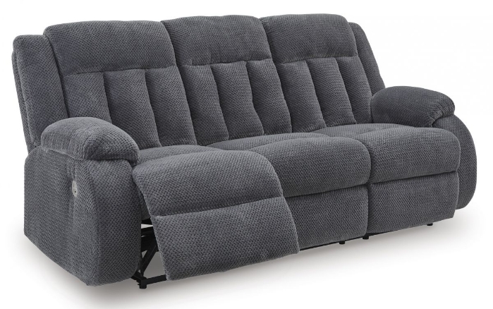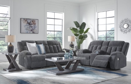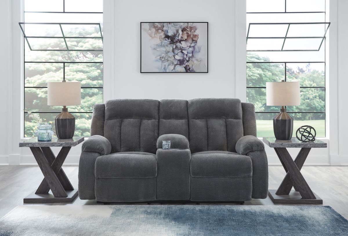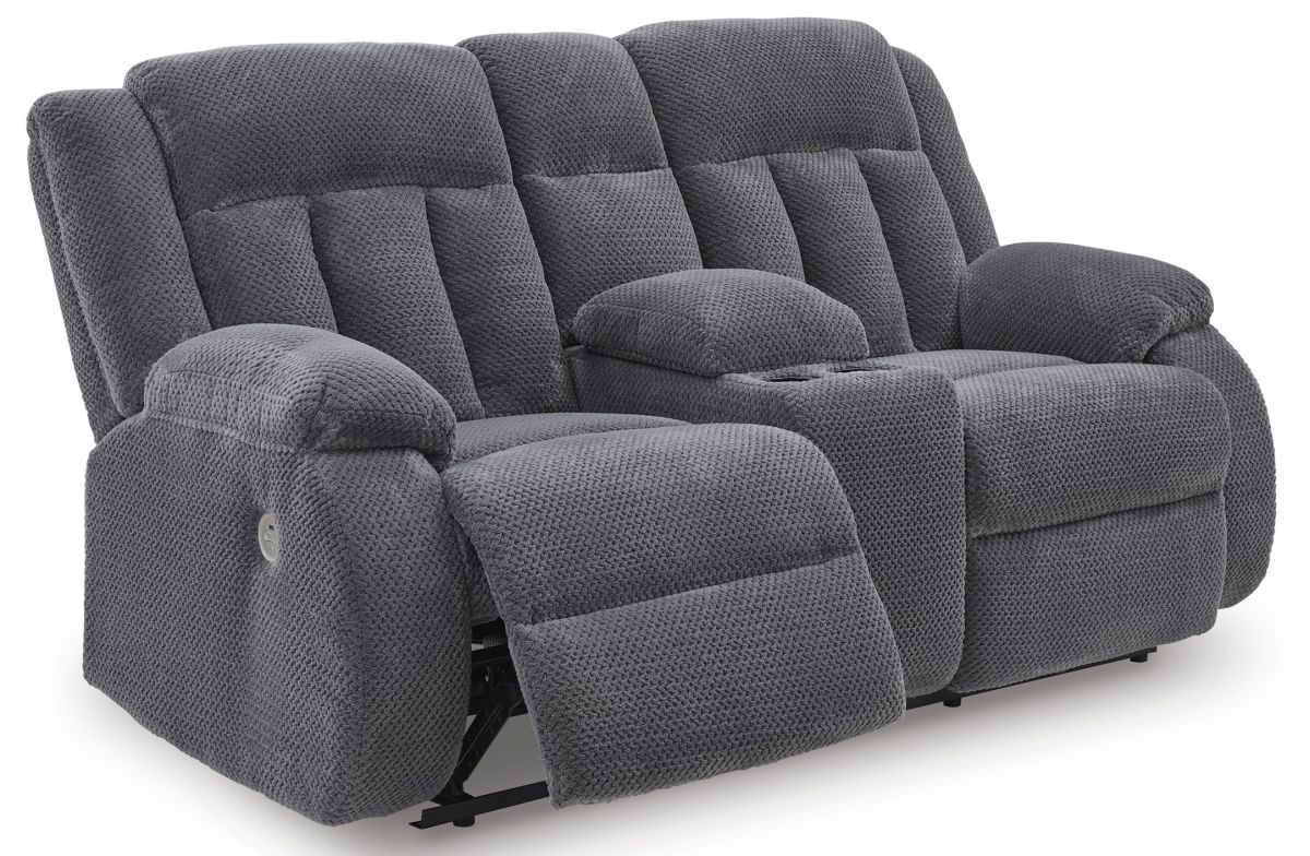 There's no need to sacrifice looks for comfort—this power reclining loveseat with console serves up both, plus a richly relaxed sense of style. Its steel-hued velvet upholstery is ultra soft, with a plush waffle weave for an added layer of interest. The overstuffed pillow top armrests are custom made for lazy afternoon catnaps. A one-touch power control takes the pleasure of reclining to a higher level, while cup holders and USB charging help keep essentials close by.