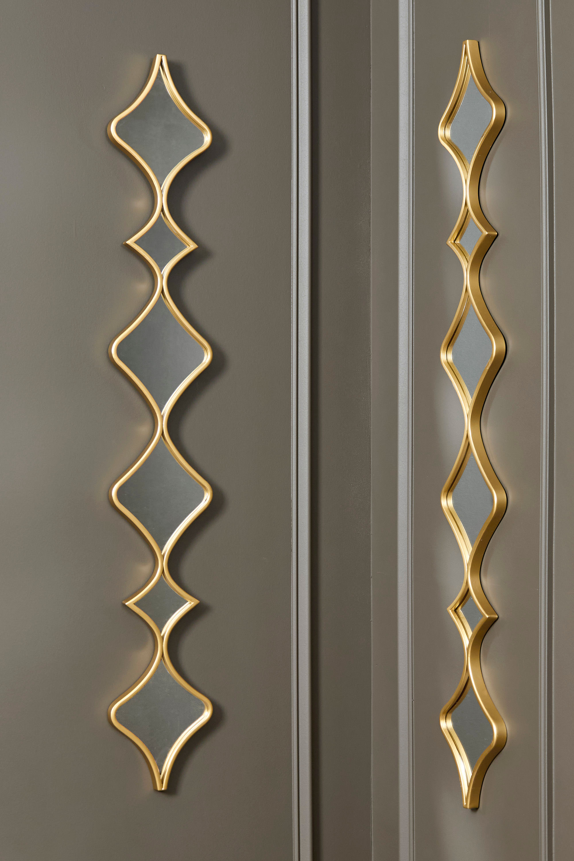 Add a gold accent to any room with the metal Harriswood accent mirror set of 2. Made to have the option to hang it horizontally or vertically, this mirror set will be sure to fill up an empty wall space. The geometric design of the Harriswood accent mirror set of 2 will add contemporary style and visual interest.