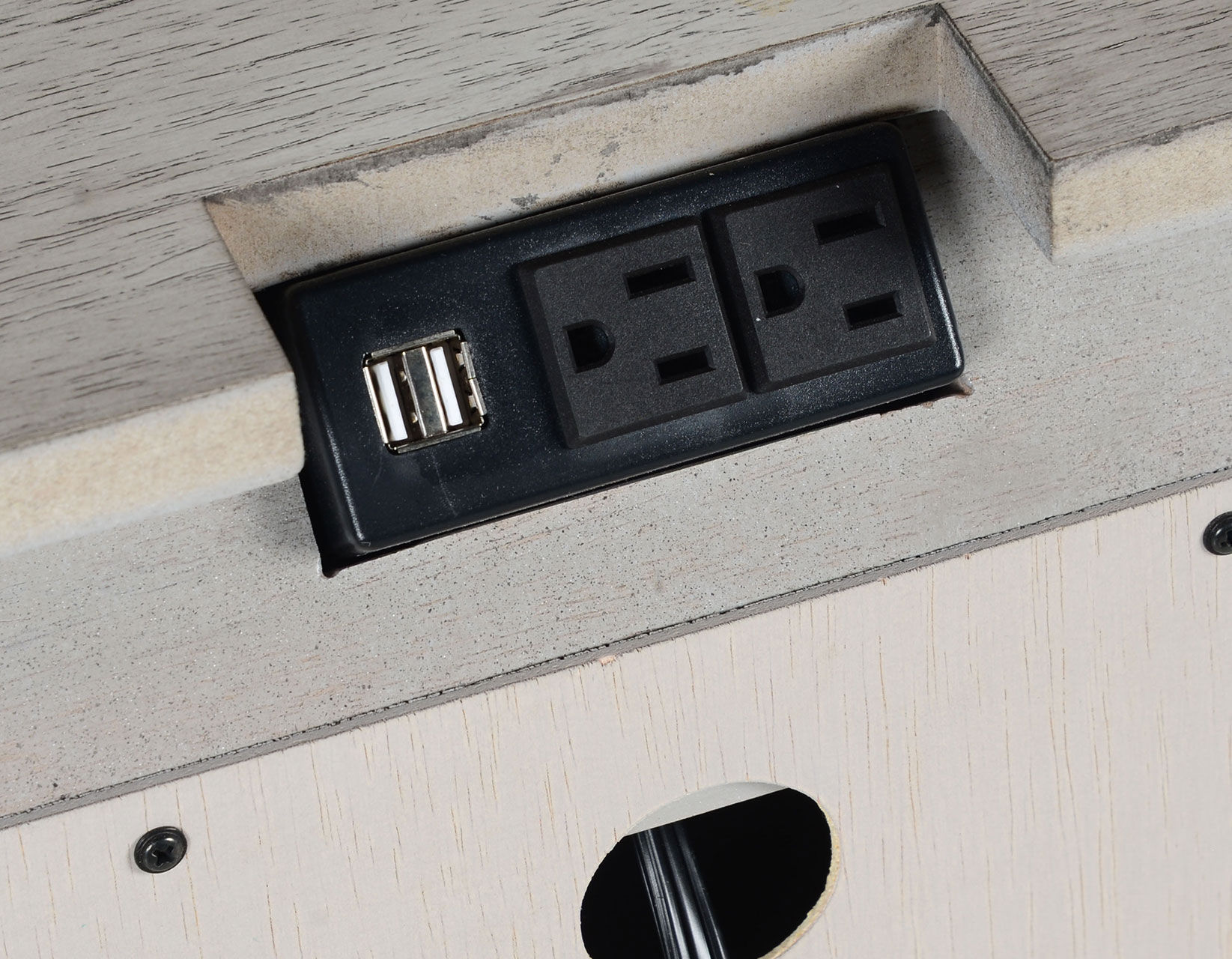 The Highland Park Nightstand comes packed with impressive features; a lustrous Cathedral white finish, nickel hardware and substantial wraparound modding on base, top and between drawers. The vintaged styling elegance balances the Intricate details in a package that leans toward a farmhouse inspiration. But there is nothing retro about the built-in function of this piece: a ;built-in charging station ensures all your gadgets stay charged with two outlets and 2 USB chargers, freeing up valuable bedroom outlets. Dual drawers offer great bedside storage options and help complete your bedroom in a stylish configuration.